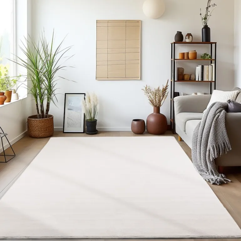 Sky Kortluvet Tæppeløber Ensfarvet – Creme