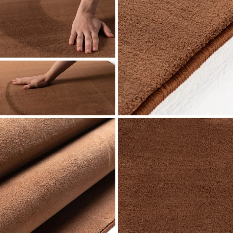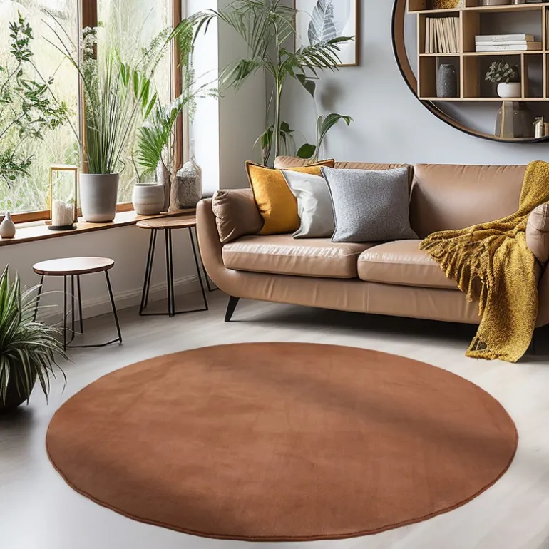 Sky Rund Kortluvet tæppe Ensfarvet – Brun