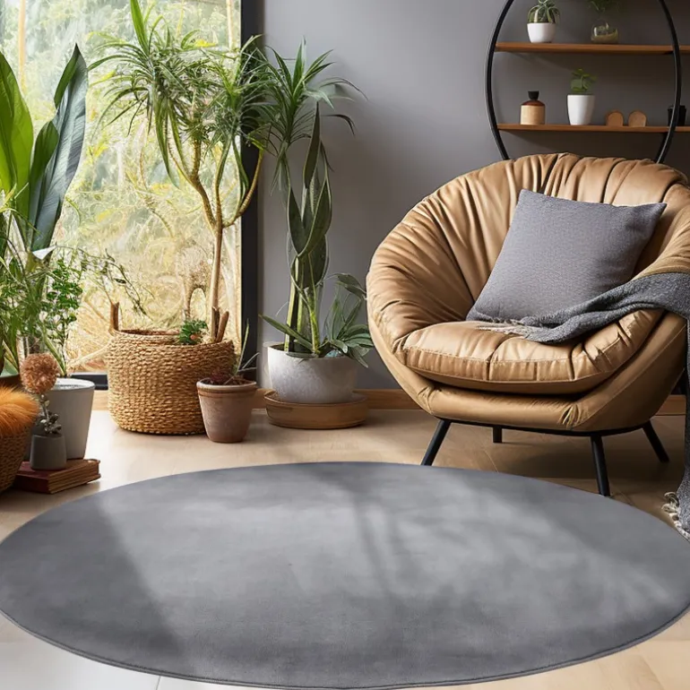 Sky Rund Kortluvet tæppe Ensfarvet – Grå