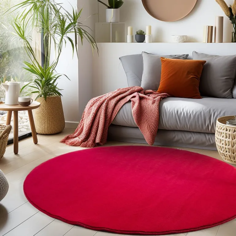 Sky Rund Kortluvet tæppe Ensfarvet – Rød