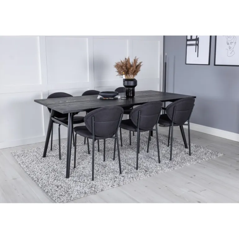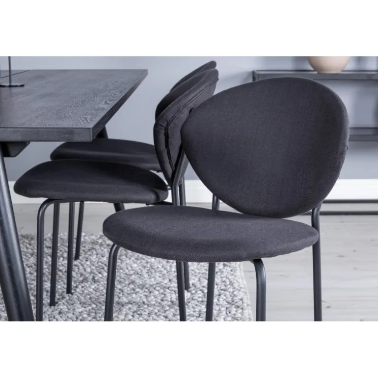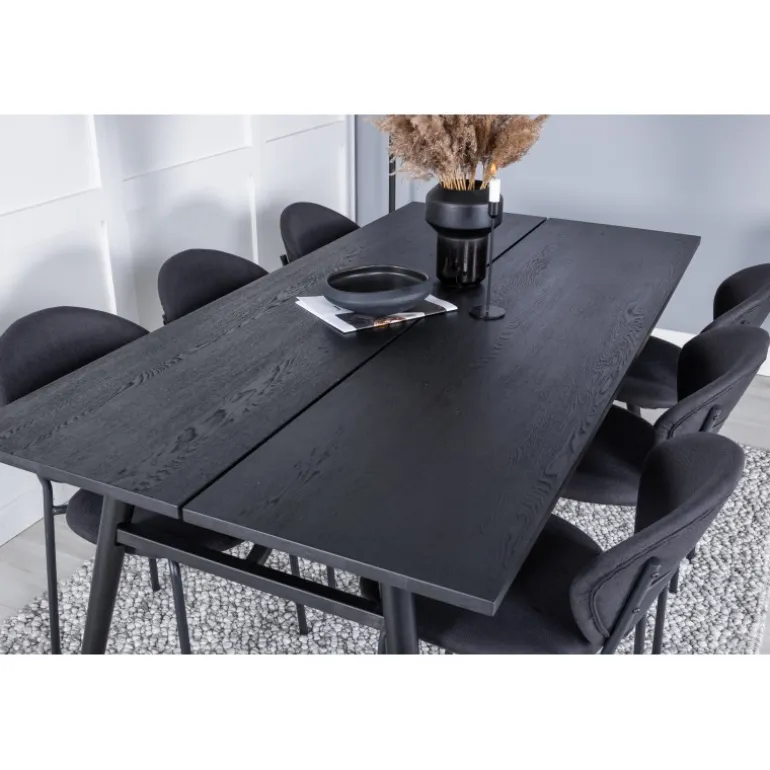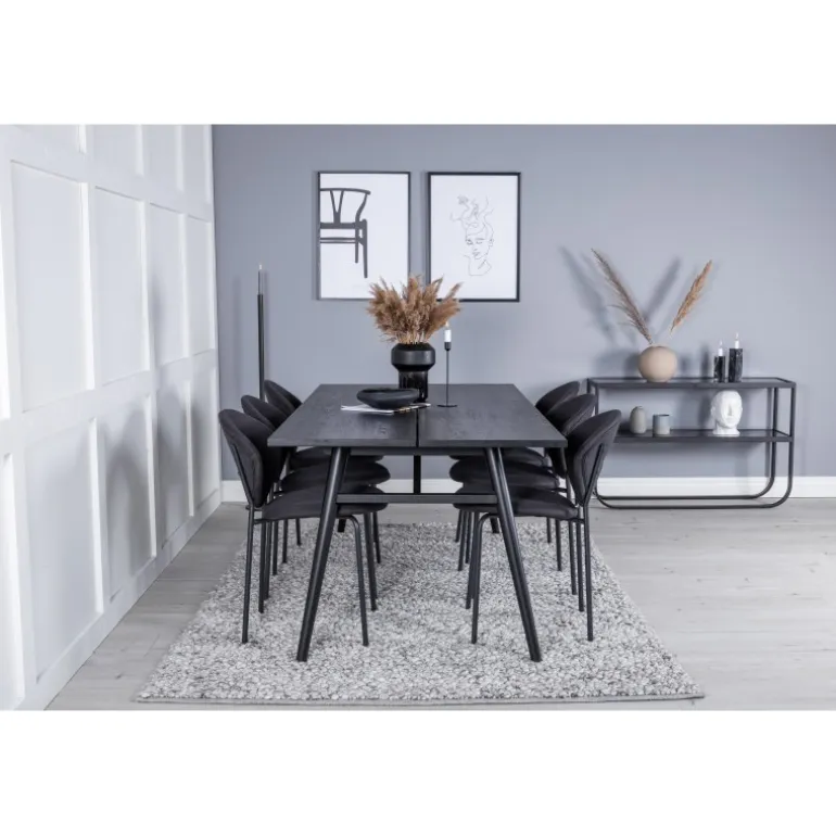 - Sort finish: Elegant sort finish på både bord og stole, der skaber et sofistikeret look.