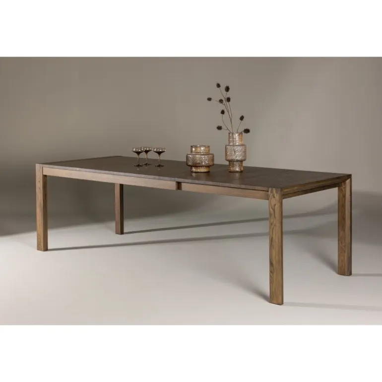 Slider Spisebord er et spisebord i egetræslook, der imponerer med sin varme, jordnære farve! Slider er vores populære, udtrækkelige spisebord, der fungerer lige så godt til hverdagslivet som til festmåltider! De lige nordiske former skaber et luftigt og moderne helhedsindtryk i rummet, og bordet er let at matche med anden indretning. Kombiner med et par lækre og komfortable spisebordsstole og nyd en indbydende Spisebordssæt! Plejeråd: Til daglig rengøring af træmøbler indendørs er en tør klud den bedste løsning. Ved eventuelle pletter anvend en fugtig klud, men undgå at gennembløde – og tør straks efter. Både opløsningsmidler og blegemidler bør undgås, da de kan ødelægge overfladens finish. Beskyt gerne overfladen med bordskånere for at undgå pletter fra spildte væsker og varme genstande.