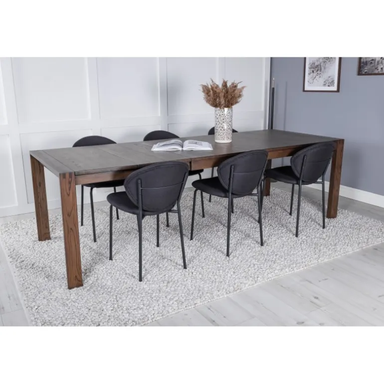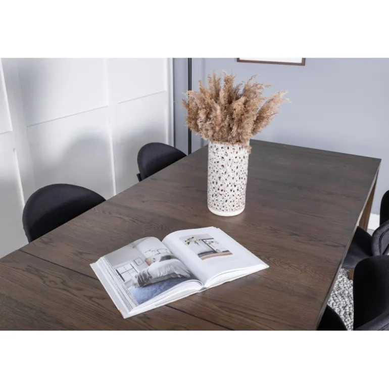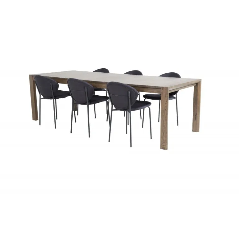 Slider Rektangulært Spisebordssæt er det perfekte valg til din spisestue. Med et elegant egetræslook og forlængelsesmuligheder er dette Spisebordssæt både stilfuldt og funktionelt. Det kombineres her med de stilfulde Vault spisestole, som er designet til at skabe en sammenhængende og moderne atmosfære. Perfekt til både små og store selskaber, vil dette Spisebordssæt bringe elegance og komfort til dine måltider.