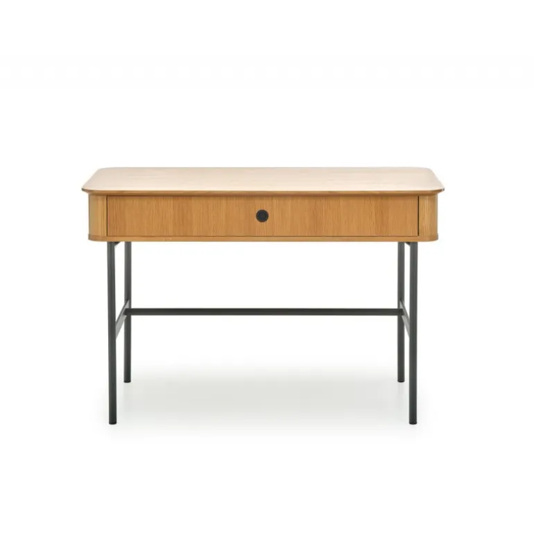 SMART B-1 skrivebordet i naturlig eg og Sort er det perfekte valg til dit hjemmekontor eller arbejdsområde. Med dimensioner på 117/59/76 cm tilbyder dette skrivebord en rummelig arbejdsflade, samtidig med at det passer ind i mange forskellige rum. Materialet består af MDF og naturlig egefinér samt spånplade med naturlig egefinér og pulverlakeret stål, hvilket sikrer både holdbarhed og et stilfuldt udseende. Den naturlige eg og Sorte farve kombination giver et moderne og elegant look, der passer til enhver indretning. Med en nettovægt på 33.500 kg er skrivebordet robust og stabilt, hvilket giver en sikker arbejdsplads.
