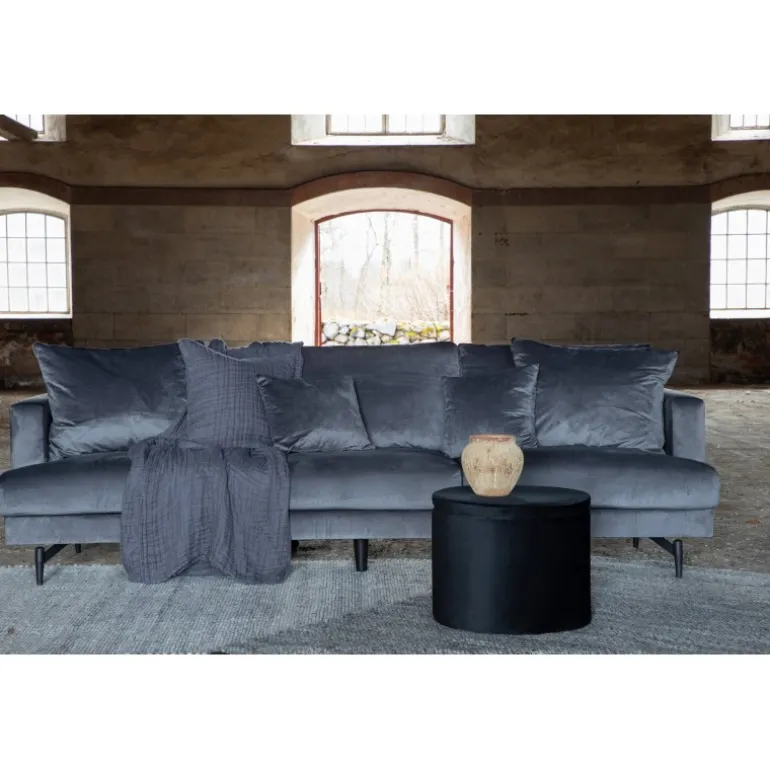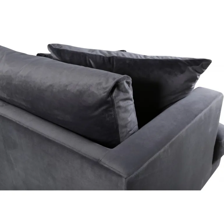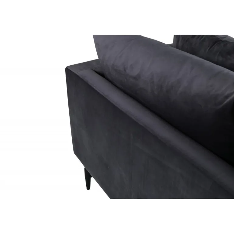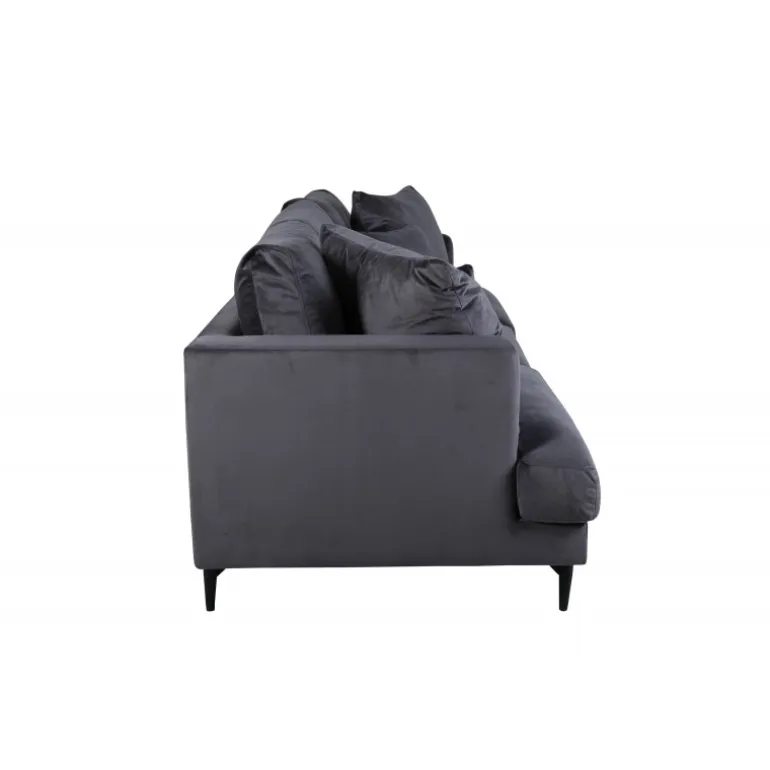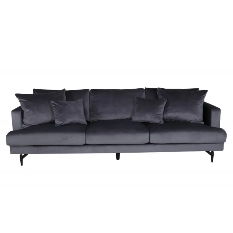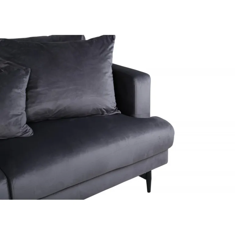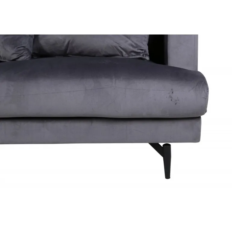 En mørkegrå, velour sofa-drøm, der udstråler luksus og stil! Sofia sofa-serien kombinerer elegant design med en lige, nordisk stil og en charmerende fremtoning, der skaber en indbydende blikfanger. De smalle ben i metal giver denne 3 personers sofa et smart og dekorativt løft, der gør det nemt at støvsuge under den. Giv dig tid til afslapning – hyg dig med familien eller bred dig ud alene! Sofaens dimensioner: Bredde: 255 cm, dybde: 56 cm, højde: 66 cm. Plejeråd: Velour har en tendens til at få trykmærker, når luven lægger sig. Disse mærker kan få stoffet til at se slidt ud, hvilket er helt normalt for denne type materiale. Afhængigt af hvordan lyset falder, kan stoffet ændre sig i forskellige nuancer.