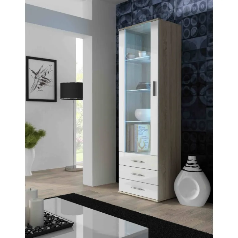 Giv dit hjem en moderne opgradering med SOHO S1 sonoma eg/ hvid skabet. Dette stilfulde og funktionelle skab har dimensionerne 192 cm i højde, 60 cm i bredde og 41 cm i dybde, hvilket gør det ideelt til ethvert rum. Skabets krop er lavet af lamineret mat spånplade, mens fronten består af lamineret højglans MDF. Håndtaget er af plastik. Bemærk, at belysning ikke er inkluderet og skal bestilles separat (3LED).
