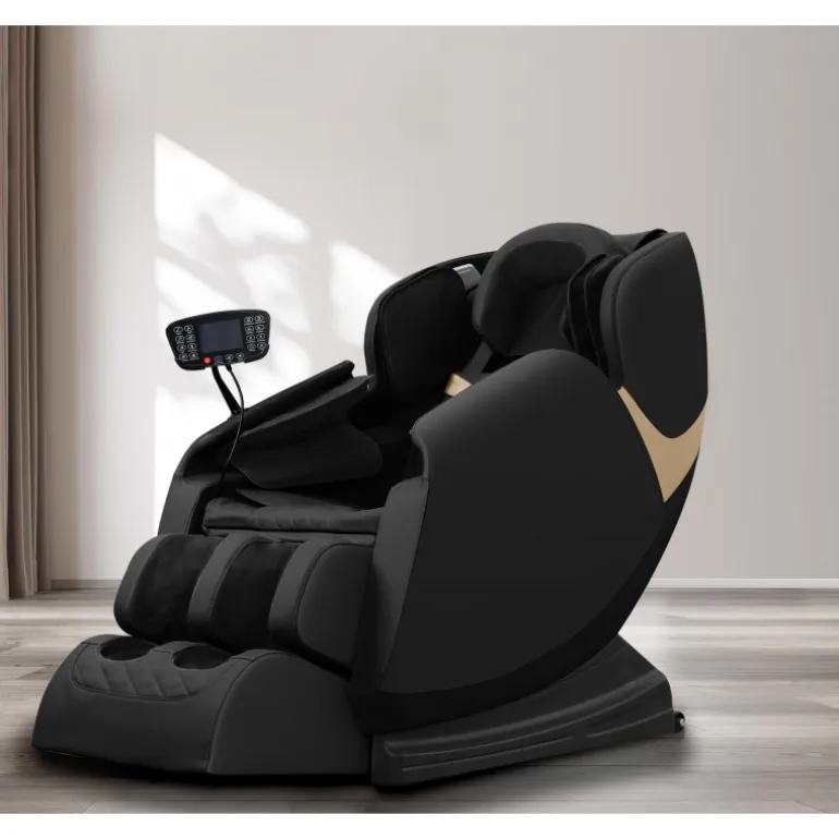 Oplev ultimativ afslapning med SOLARIA massagestol. Denne luksuriøse stol i øko-læder kombinerer avanceret teknologi og elegant design. Med 20 automatiske massageprogrammer, varmefunktion og indbyggede højttalere tilbyder den en fuldkommen spaoplevelse hjemme hos dig selv. Den brugervenlige touchskærm gør det nemt at vælge dine foretrukne indstillinger. Fås i sofistikerede farver: Sort og guld.