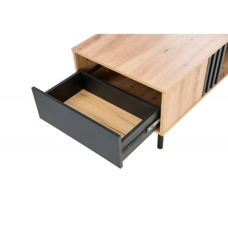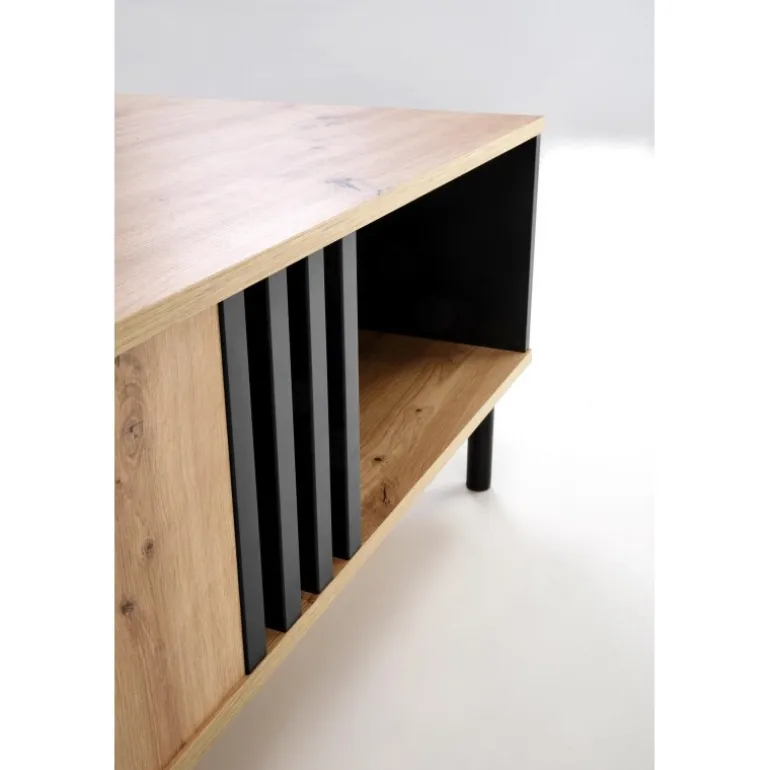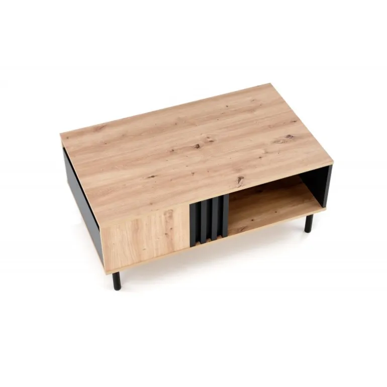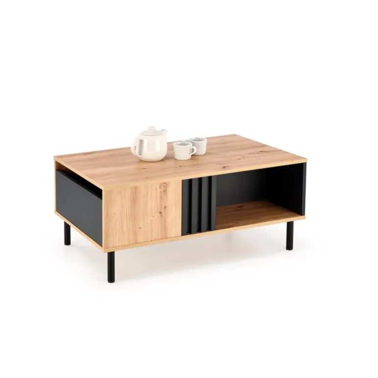 SONIA sofabordet i håndværkseg og Sort kombinerer stil og funktionalitet. Med dimensionerne 100/60/43 cm passer det perfekt ind i enhver stue. Det er fremstillet af lamineret spånplade og pulverlakeret stål, hvilket sikrer holdbarhed og et moderne udseende. Tilføj et strejf af elegance til dit hjem med dette sofabord.