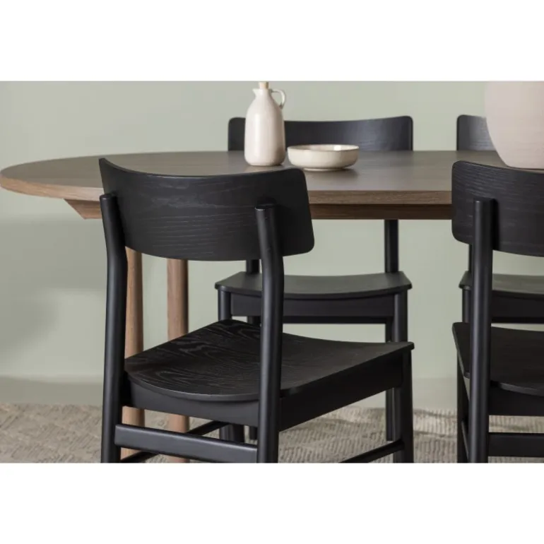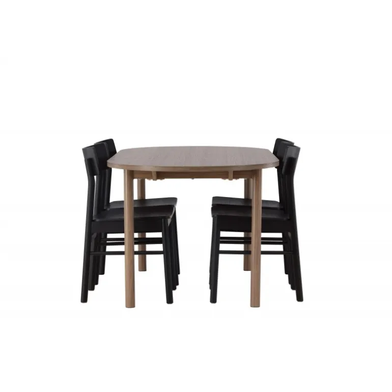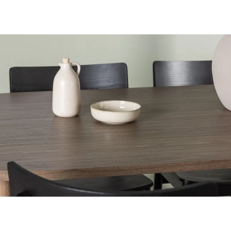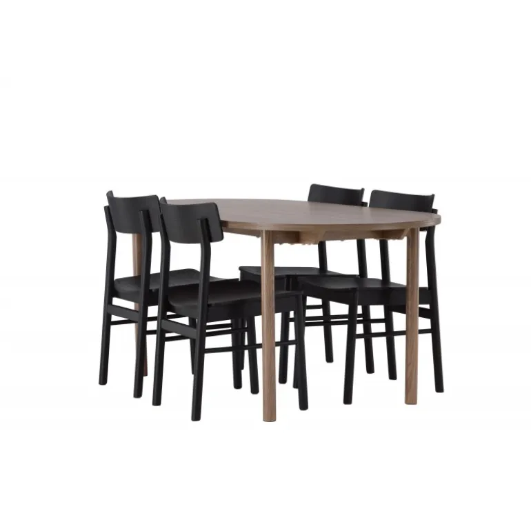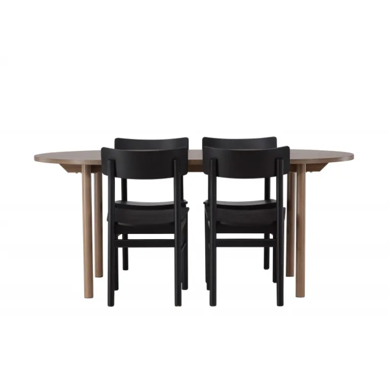 Skab tidløs elegance med et klassisk Spisebordssæt, der perfekt kombinerer charme og komfort! Vores ovale spisebord Andy tilbyder den perfekte kombination af minimalisme og charme til dit hjem. Det ovale spisebord Andy udstråler enkelhed med sin tynde MDF-bordplade og fire cylindriske ben. Den konsistente mørkebrune naturlige farve er tidløs og nem at matche med forskellige indretningsstile. Bordets dimensioner er 180×75 cm. Med de naturfarvede spisebordsstole fra Montros-serien får du en klassisk og stilfuld følelse i din stue. Lavet af birk og krydsfiner i en smuk naturlig træfarve, tilføjer disse stole et strejf af traditionel elegance til dit hjemmemiljø. Stolens ryg er let buet, og benene har en nordisk lige form, hvilket skaber en harmonisk helhed. Nyd en middag med familie og venner i dette klassiske Spisebordssæt, hvor du kan skabe mindeværdige øjeblikke, mens du nyder god mad og godt selskab. Det ovale bord giver nok plads til at rumme alle, mens det skaber en intim atmosfære, der får alle til at føle sig velkomne og afslappede!