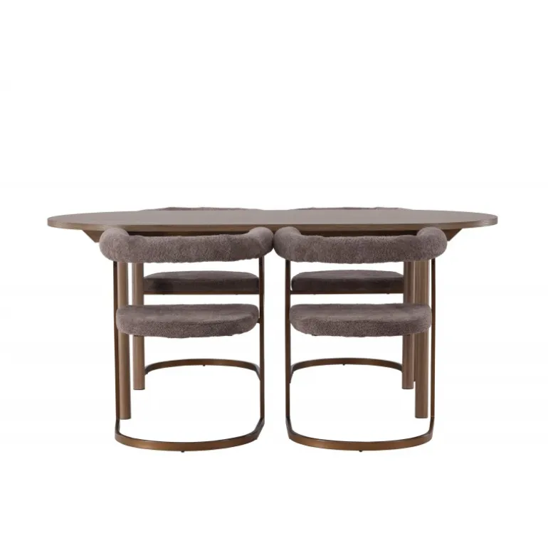 Andy spisestuebord og Morning stole tilbyder en trendy og komfortabel løsning til din spisestueindretning. Andy spisestuebord bringer en naturlig og varm følelse til din spisestue med sin MDF-bordplade og naturfarvede stålben. Med sine generøse dimensioner på 180×90 cm og en højde på 75 cm, giver dette bord masser af plads til måltider og samlinger. Morning stolene komplementerer bordet med deres moderne design og komfortable siddekomfort i grå Polyester Boucle. Stolenes brune stålrammer tilføjer et jordnært præg til rummet og tilbyder stabilitet. Dette Spisebordssæt inkluderer fire stole, hvilket gør det ideelt til familiemiddage og små sammenkomster. Med sit trendy design og varme atmosfære bliver dette ensemble til en perfekt indretningsdetalje for din spisestue. Skab en indbydende og stilfuld atmosfære med Andy spisestuebord og Morning stole.