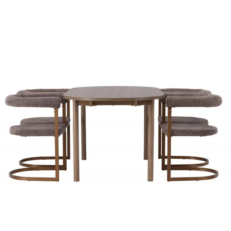 - Komfortable stole: Grå Polyester Boucle sæder med brune stålrammer.
