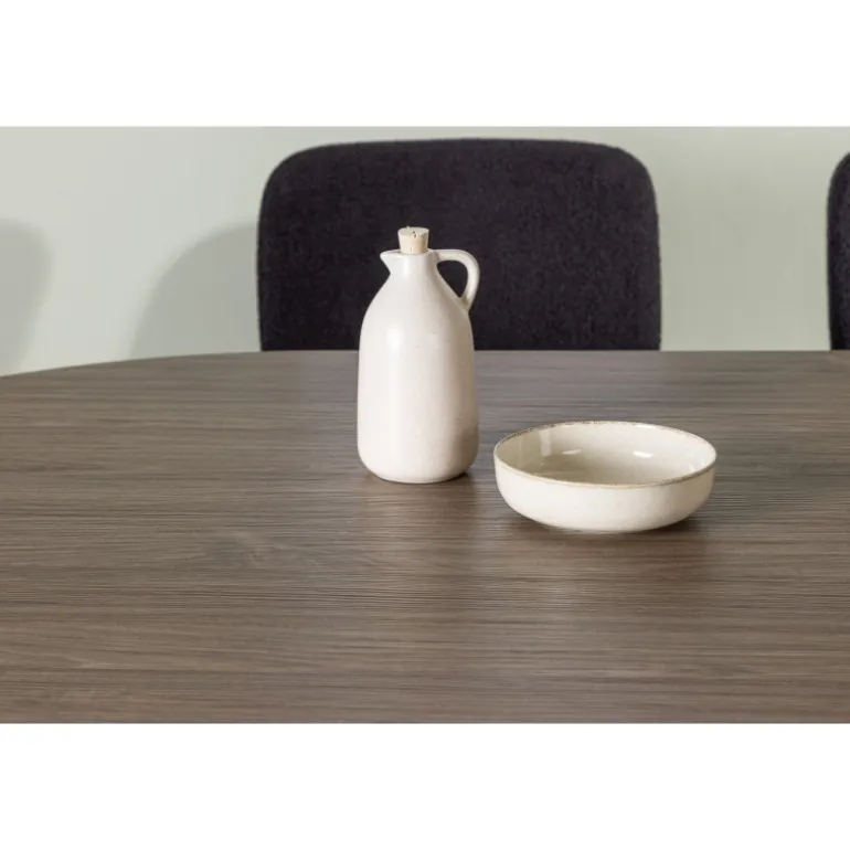 - Ovalt bord Andy: Slankt og klassisk design med en varm, mørkebrun MDF-top.