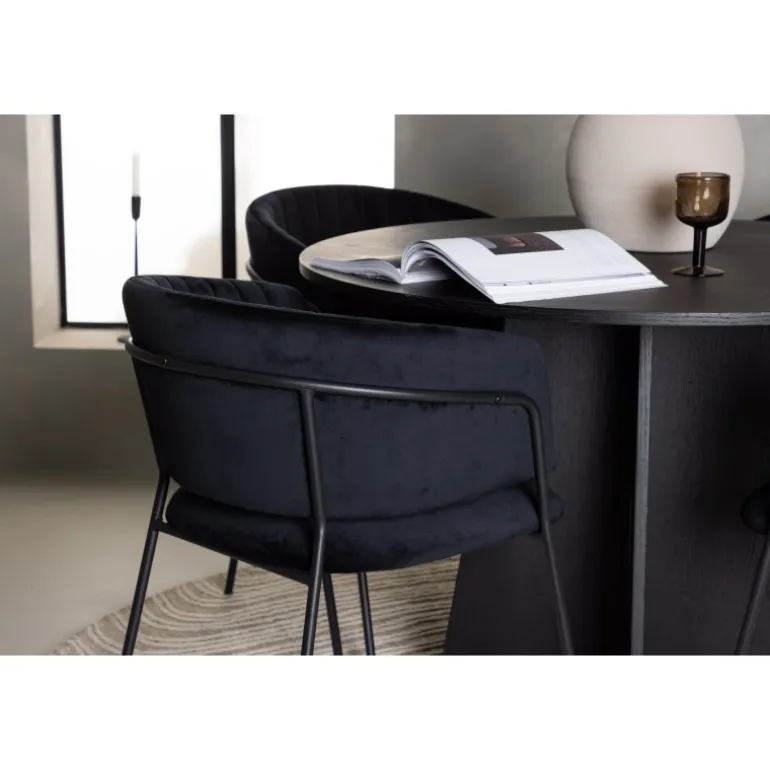 - Kombineret med Selma stole i sort velour og smuk dekorativ syning.