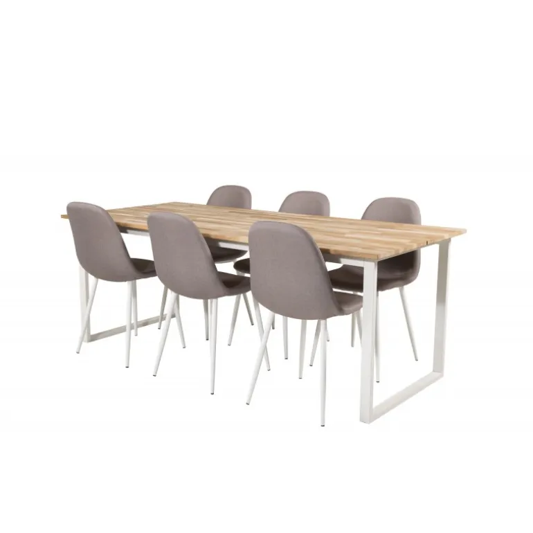Spisebordssættet Cirebon sammen med stole fra Polar-serien er en klassisk Spisebordssæt, der passer perfekt i de fleste husstande! Bordpladen er lavet af teak, hvilket giver et naturligt og varmt udtryk, mens stolene er fremstillet af polyester-linned og stål for optimal holdbarhed og komfort. Bemærk, at montering er påkrævet, og det er vigtigt at følge plejerådene for at bevare møblernes kvalitet og udseende.