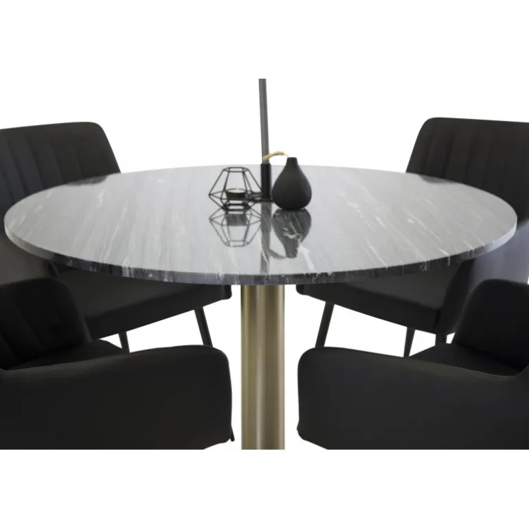 - Høj kvalitet: Bordplade i mørkegrå marmor og stole i sort PU-læder.