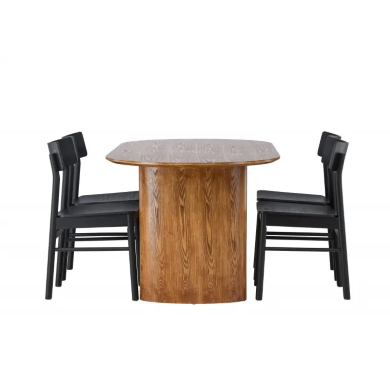 Et elegant og velovervejet Spisebordssæt i rustik stil, der passer perfekt takket være dets trætoner og nordiske former! Vores ovale spisebord i robust stil fra Isolde-serien kommer i en trendy naturlig nuance. Bordet har en oval MDF-bordplade og en solid ramme, der giver et stabilt indtryk. Det organiske materiale tilføjer også en stilfuld detalje til bordets samlede udseende. Bordets dimensioner er 140×75 cm. Med de naturfarvede spisebordsstole fra Montros-serien får du en klassisk og stilfuld følelse i din stue. Lavet af birk og krydsfiner i en smuk naturlig træfarve, tilføjer disse stole et strejf af traditionel elegance til dit hjemmemiljø. Stolens ryg er let rundet, og benene har en nordisk lige form, hvilket skaber en harmonisk helhed. Denne stilfulde kombination tilbyder dig et komplet Spisebordssæt, der kombinerer træmaterialer og nuancer på en perfekt og harmonisk måde. Inviter dine kære til hyggelige måltider i fremtiden og giv samtidig dit interiør et løft!