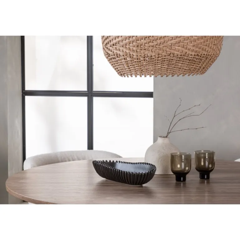 - Rundt spisebord Lanzo: Skandinavisk design med en tynd, rund bordplade og en snoet cylindrisk base.