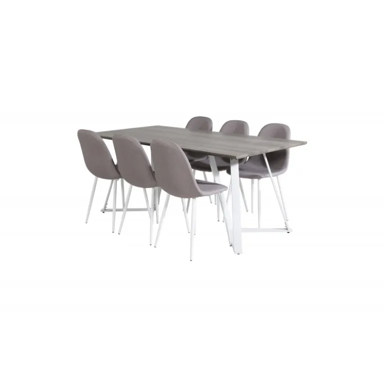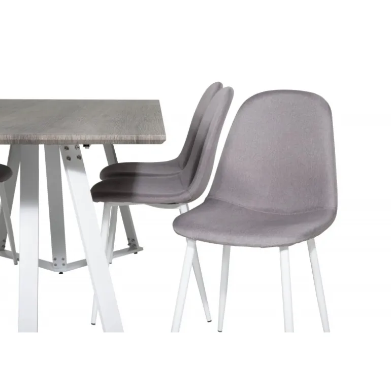 Klassisk Spisebordssæt, der passer ind i de fleste hjem! Spisebordet Marina sammen med stolene fra Polar-serien inviterer til mange vidunderlige sociale øjeblikke. Med et gråt MDF-bord og stole i grå og hvid polyesterlinned, er dette sæt både funktionelt og stilfuldt. Stålben sikrer robusthed og lang levetid. Ideelt til daglig brug og særlige lejligheder.