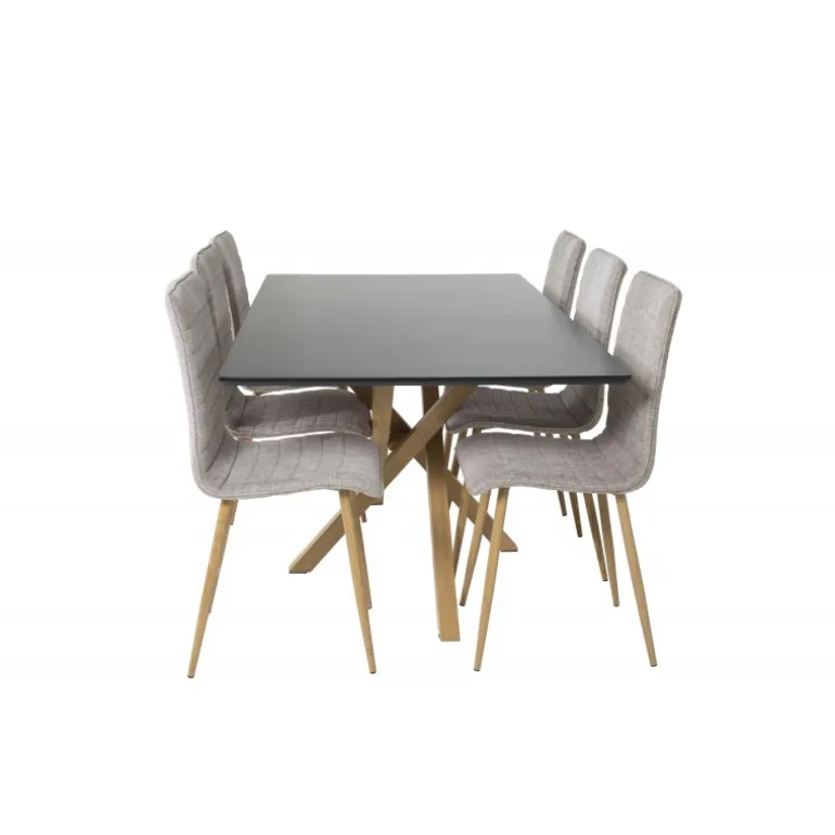 Enkel, moderne og tidløs! Med Spisebordssættet Piazza kombineret med Windu stolene får du en klassisk Spisebordssæt, der passer ind i de fleste hjem! Sort MDF-bordplade og lysegrå, naturlige stole skaber en elegant kontrast, der tilføjer stil til din spisestue. Perfekt til daglig brug og særlige lejligheder.