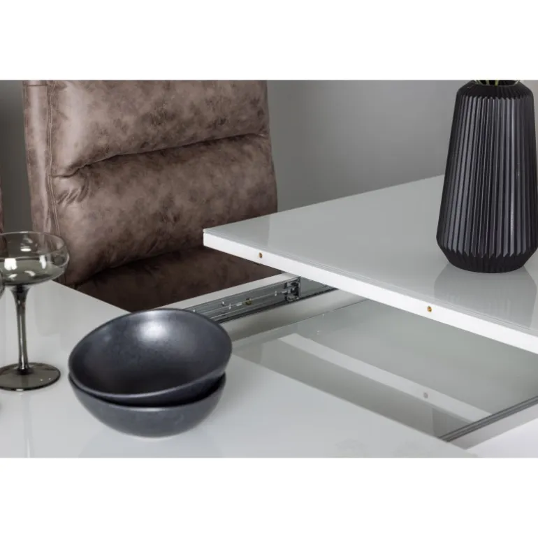 - Udtrækbart spisebord: Pluto bordet kan udvides fra 120 cm til 160 cm, hvilket gør det perfekt til både små og store sammenkomster.