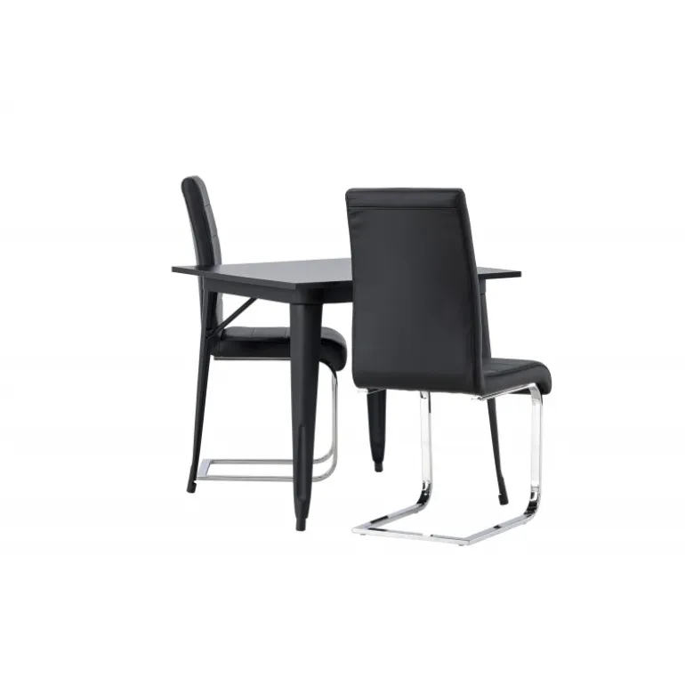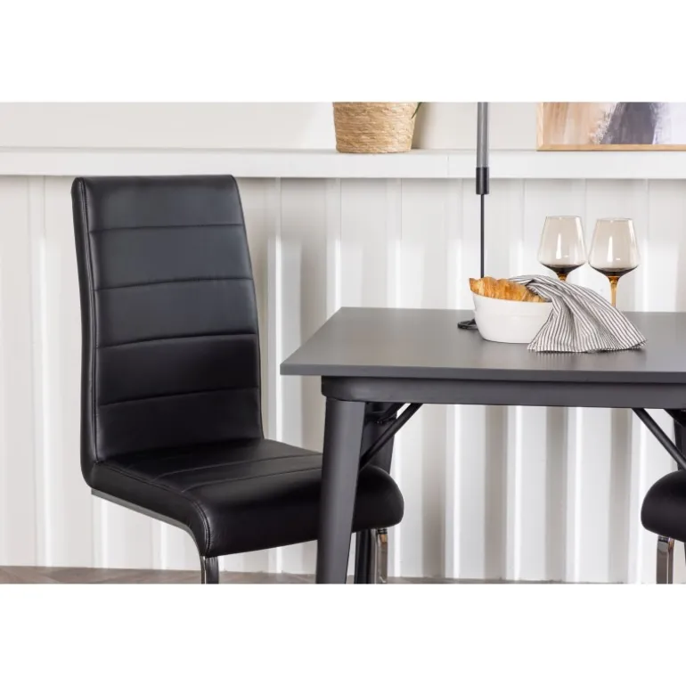 - Komfortable stole: Sorte PU-stole med dekorative syninger og krommetalben.