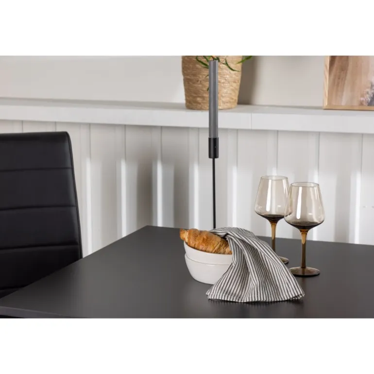 - Høj kvalitet: Bordplade i sort MDF og ben i sort metal for lang holdbarhed.