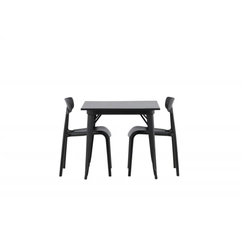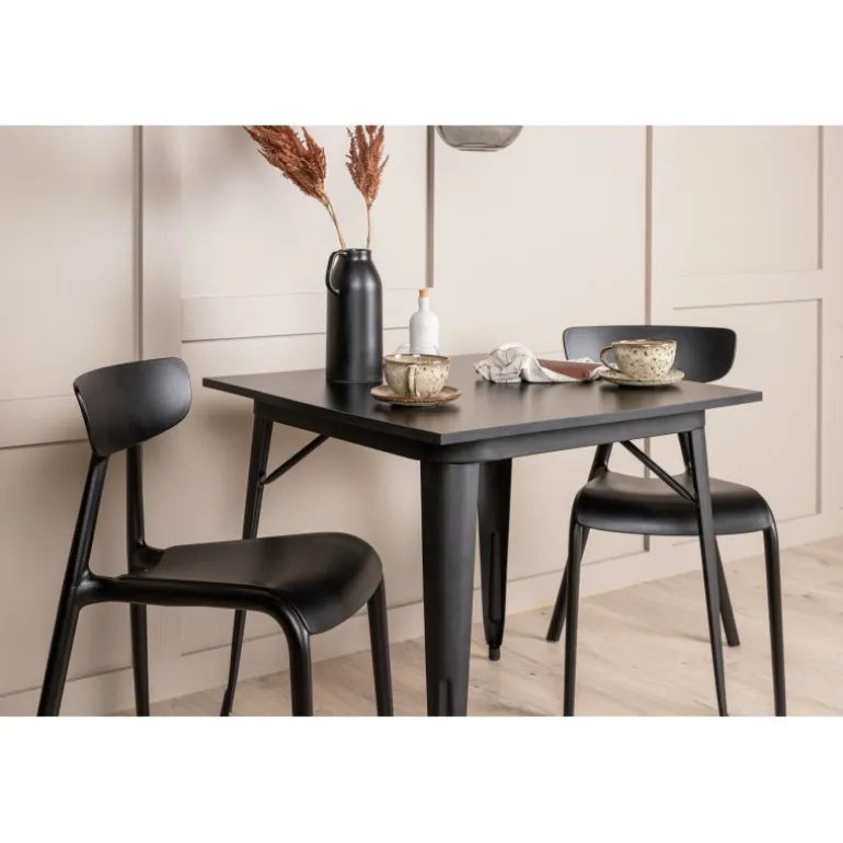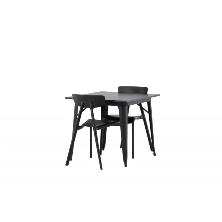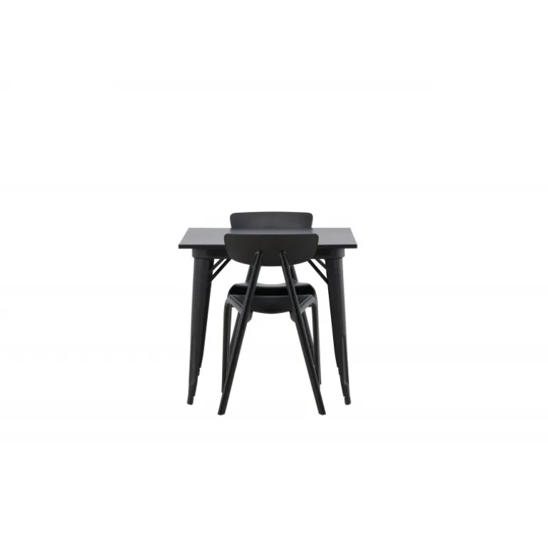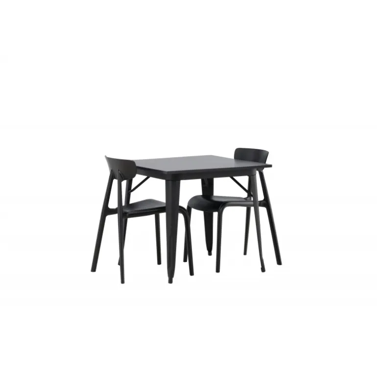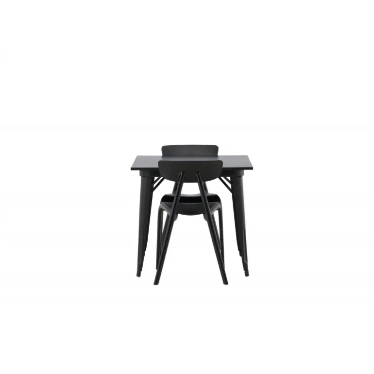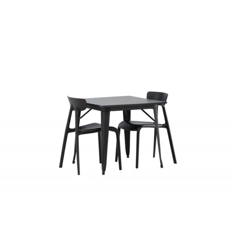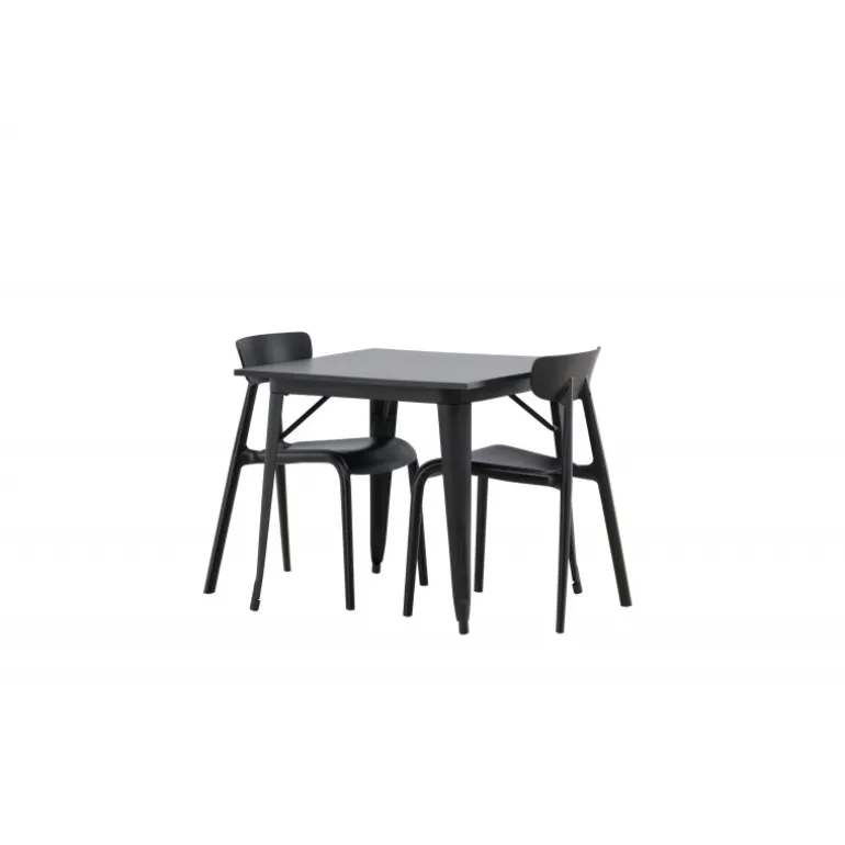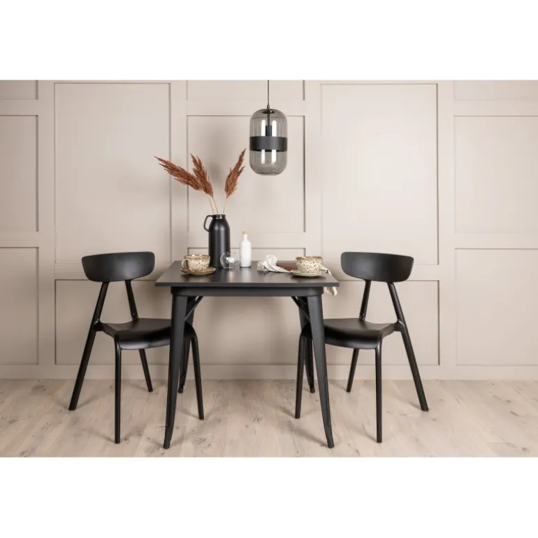 Et perfekt Spisebordssæt til den mindre køkken! Tempe spisebordet har et skandinavisk design med lige nordiske former, der står tidens prøve. Lavet med en firkantet bordplade i sort MDF og bordben i sort metal. Her sammen med 2 spisestole fra Ursholmen serien. Lavet af holdbar plastik i en sodsort farve, der er nem at matche med andre møbler. Stolen har en elegant ryg, en lidt dybere sæde og let udspilede ben i et skønt skandinavisk design. Indret smart og indbydende med et trendy sort Spisebordssæt!