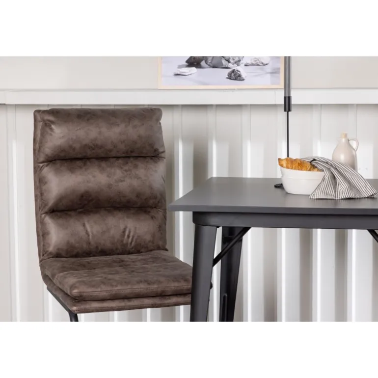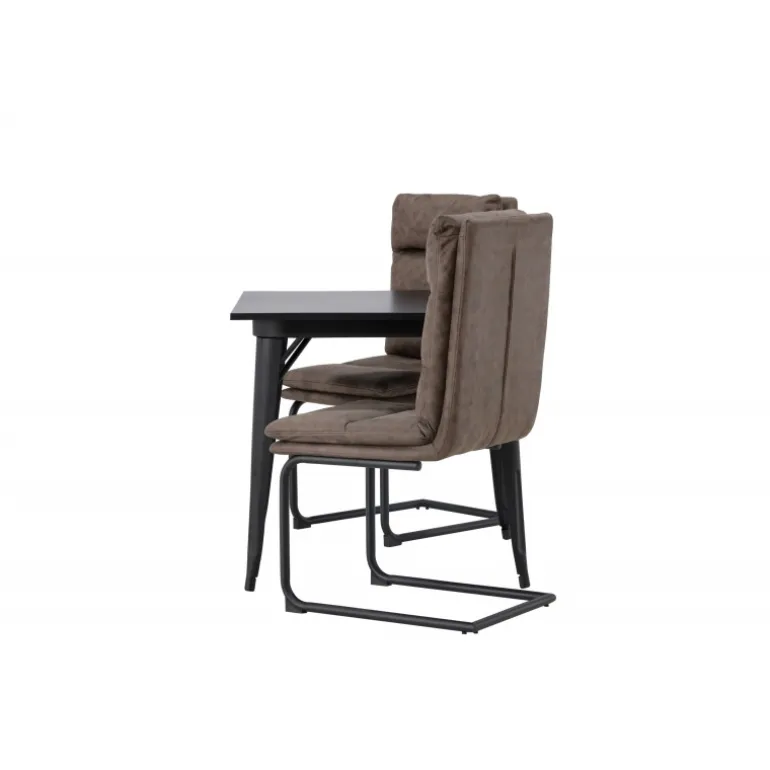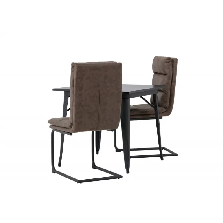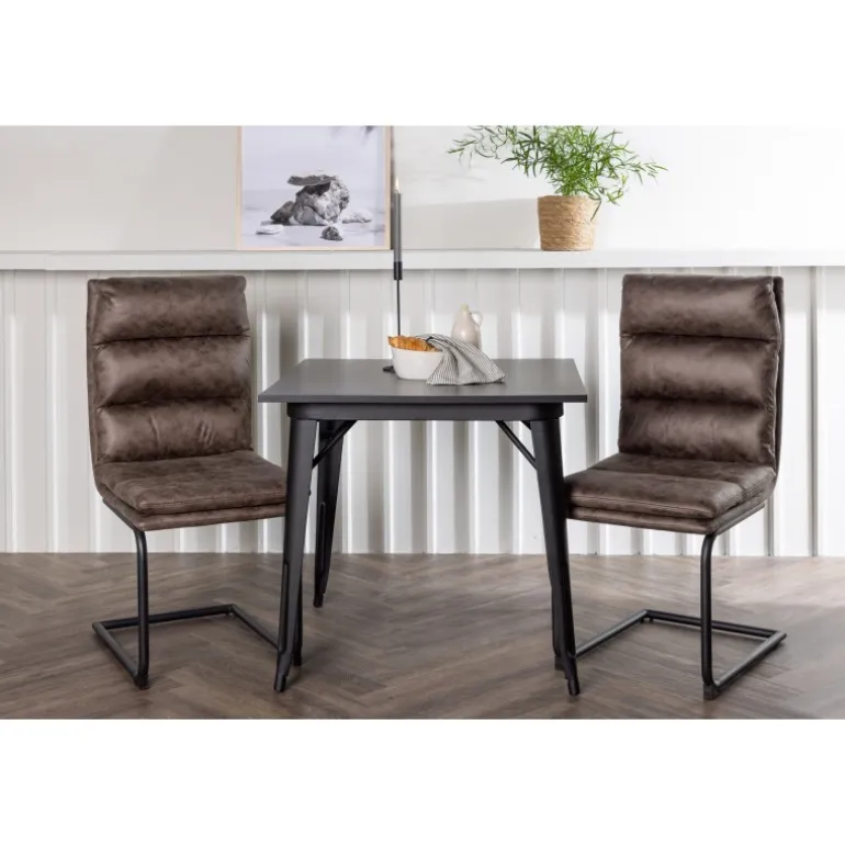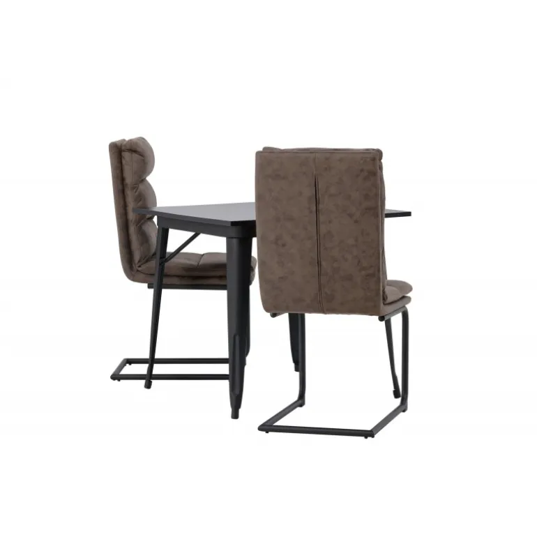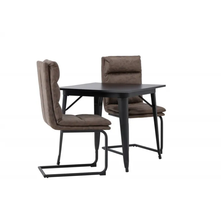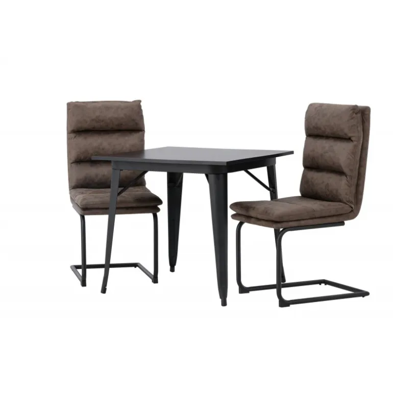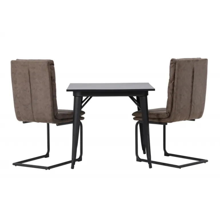 Her vil du gerne sidde komfortabelt i timevis! Vores firkantede spisebord Tempe har en passende størrelse og et trendy, skandinavisk design. Lavet med en bordplade i sort MDF og bordben i sort metal. Her i kombination med vores utroligt komfortable, brune spisebordsstole fra Zizo-serien. Denne stol har et fuldt polstret brunt mikrofibersæde, som er polstret med bløde puder for ekstra komfort. Stolebenene er minimalistiske i sort metal. Undgå at gå på kompromis mellem stil og komfort! Bordmål: 80x80cm.