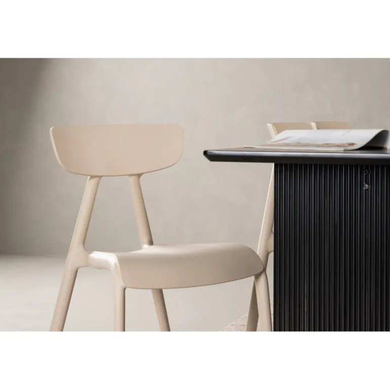 - Komfortable stole: Ursholmen-stolene er lavet af holdbar plast i en slank beige farve med en pæn ryg og dybere sæde.