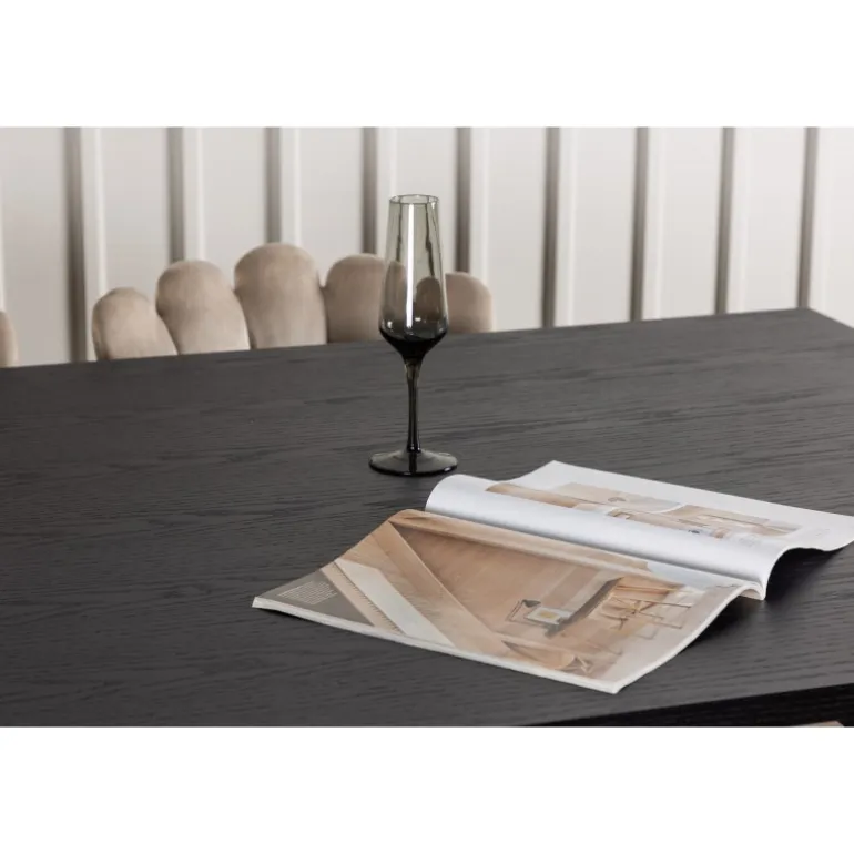 - Rektangulært bord: Smukt sortbejdset MDF-bordplade med egetræsfiner.