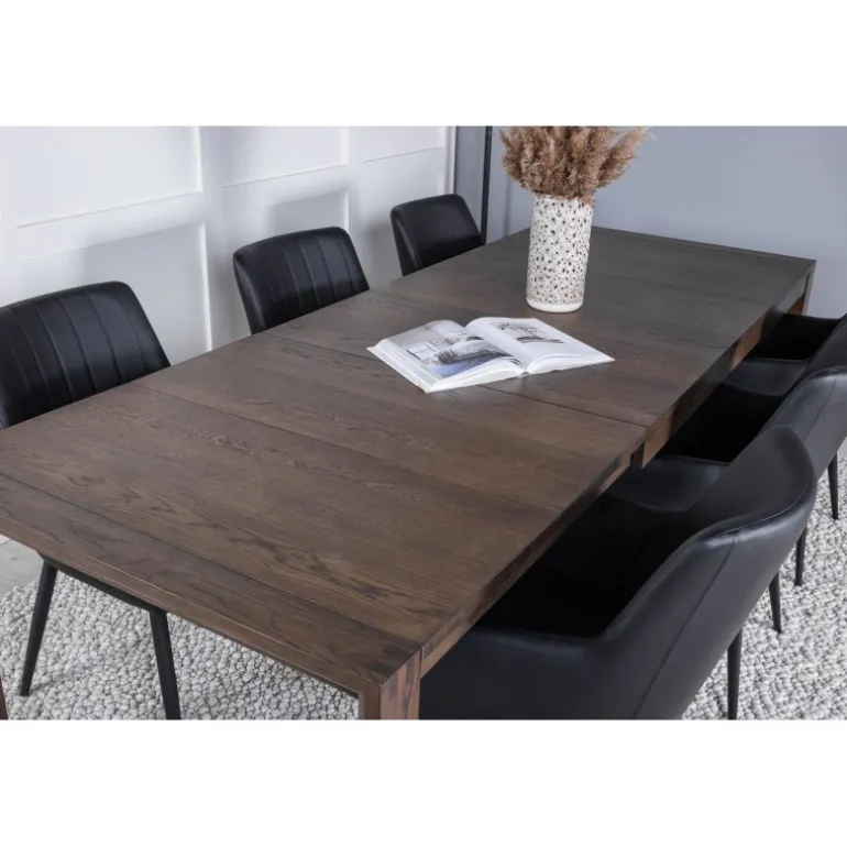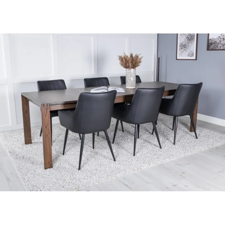 Oplev robust og velvoksne spisestole med vores Comfort serie, kombineret med det stilfulde Slider spisebord i egetræslook med udvidelsesmuligheder. Dette Spisebordssæt fungerer perfekt til både små og store selskaber!