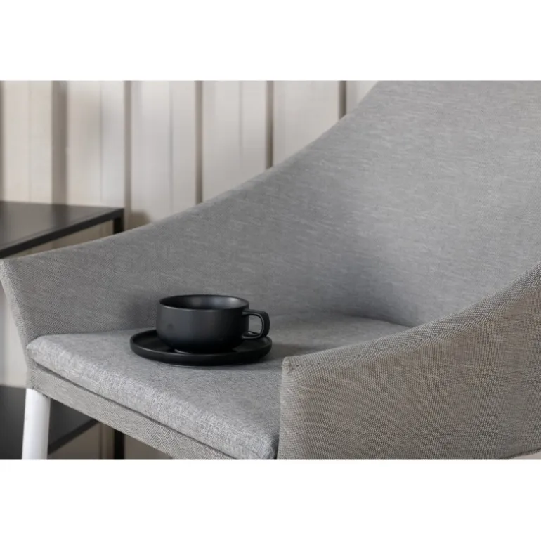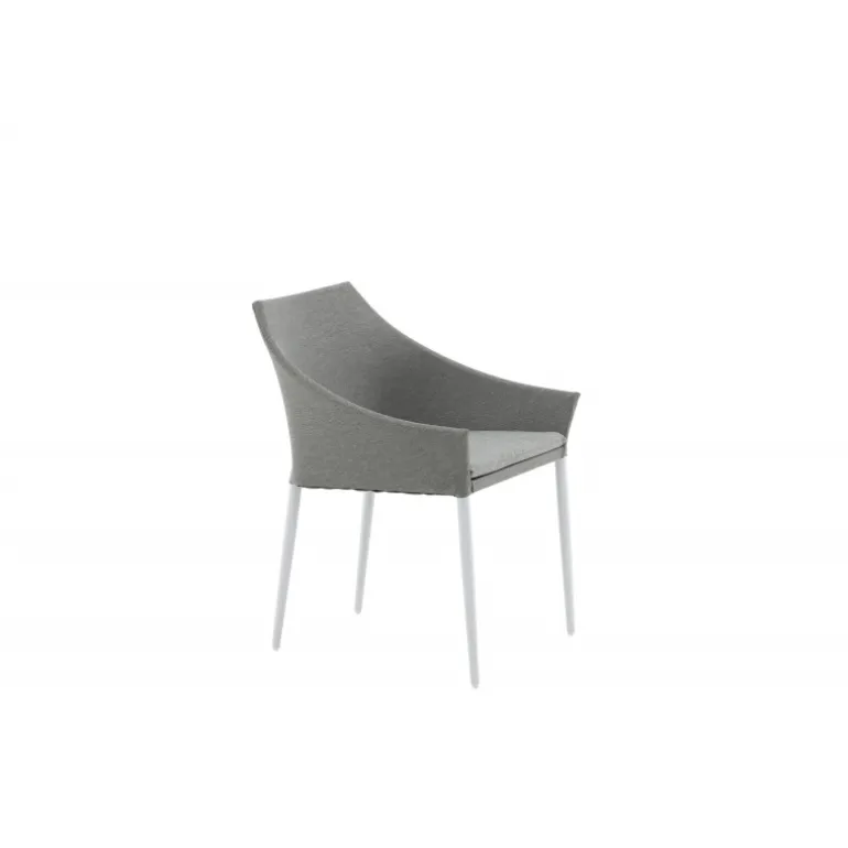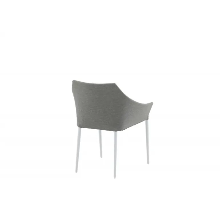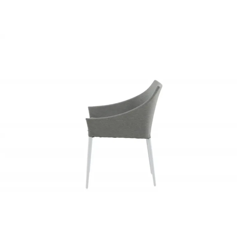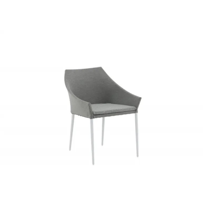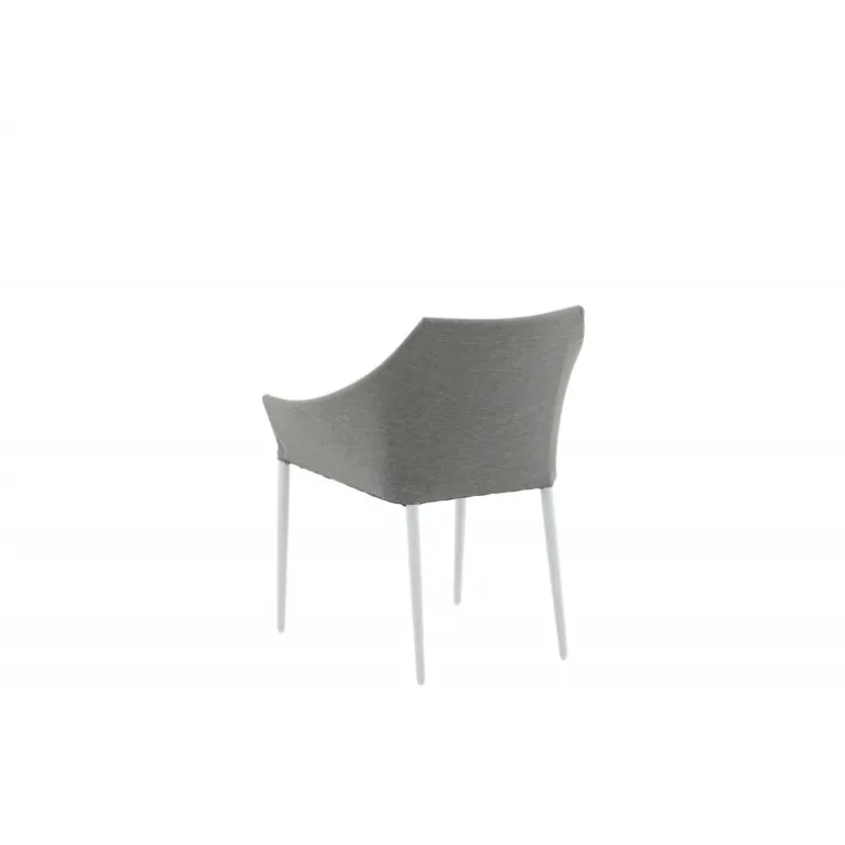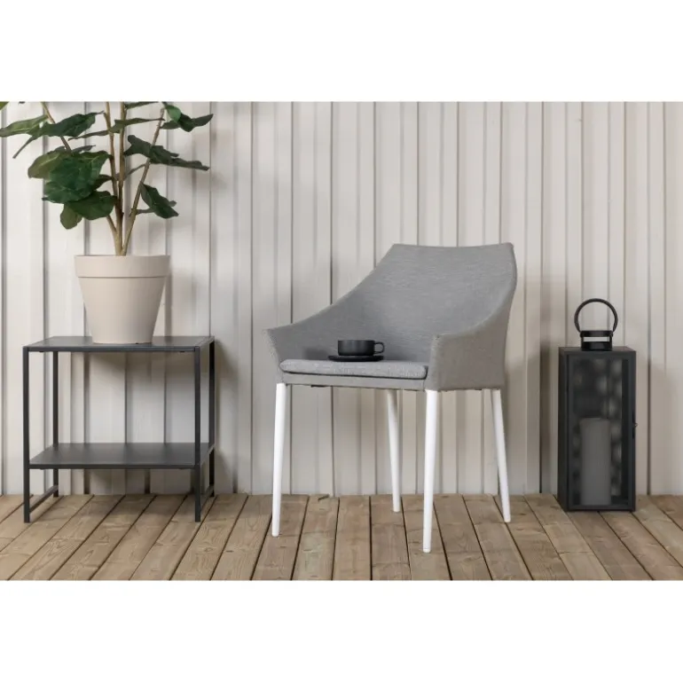 Sid behageligt i Havestole fra Spoga-serien! En ramme i robust design med ben i hvid pulverlakeret metal. Ryg og sæde med integrerede armlæn i grå polyesterstof giver dejlig siddekomfort og en behagelig sædedybde. Matcher perfekt med et flot spisebord, så du får en komplet Loungesæt – Havemøbelsæt til enten udendørsområdet eller altanen! Plejetips: Fjern pletter med det samme, gnid ikke, men forsøg at suge forsigtigt op med en klud. Hvis pletterne ikke forsvinder, kan du prøve en pletfjerner på et mindre synligt område af stoffet først. Vi anbefaler, at større møbler skummes mindst tre gange om året.