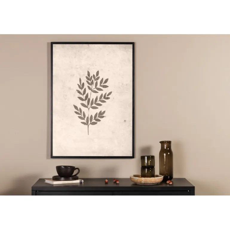 En print med beige prikket baggrund i jordfarver med et print bladmønster i brun. Hvis du elsker at dekorere hjemligt og tidløst lige så meget som vi gør, er denne plakat virkelig noget for dig. Kombiner med andre abstrakte prints eller med foto-kunst for at sammensætte din perfekte malerivæg! Dimensioner: 70×100 cm.