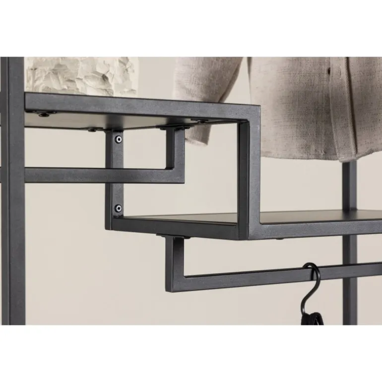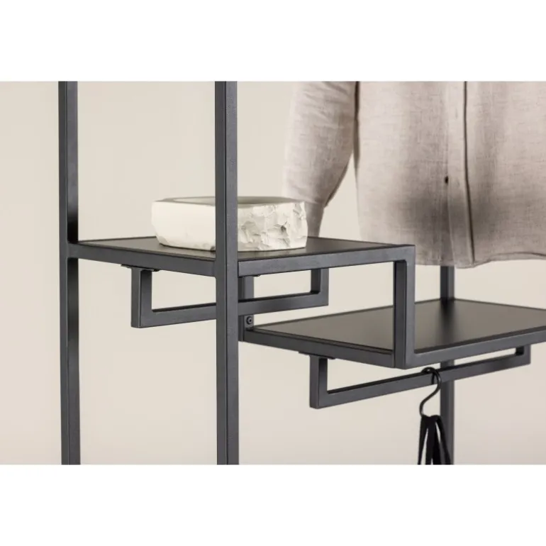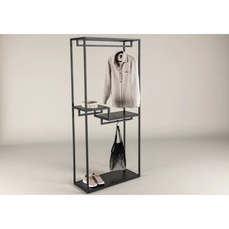Mød stil og orden med vores tøjstativ Staal, den perfekte ledsager til at organisere dine tekstiler med et strejf af moderne elegance. Fremstillet af holdbart sort stål, er Staal ikke kun en praktisk løsning, men også en smagfuld interiørdetalje, der komplementerer dit hjem på bedste vis. Staals enkle og stilfulde design giver det et tidløst æstetisk udtryk, der passer perfekt ind i forskellige rum. Den sorte farve giver et moderne udtryk og gør Staal til en stilfuld interiørdetalje. Placer det i entreen, soveværelset eller hvor du end ønsker et skud af stil og organisation. Det, der adskiller Staal, er dens smarte hylder. To mindre hylder giver plads til smykker, sammenfoldet tøj eller andre små accessories, mens den større hylde giver mulighed for at arrangere og udstille større genstande med lethed. Og som om det ikke var nok – Staals design inkluderer også plads til bøjler. Hæng dit yndlingstøj på en stilfuld måde, der gør dem både let tilgængelige og velorganiserede. Organiser dine tekstiler med legende lethed ved hjælp af Staal. Det er ikke bare et tøjstativ, men også et møbel, der gør indtryk. Staal giver dig muligheden for at kombinere funktionalitet med æstetik på en imponerende måde. Vælg Staal – din trofaste partner i at skabe orden og stil i hvert hjørne af dit hjem!