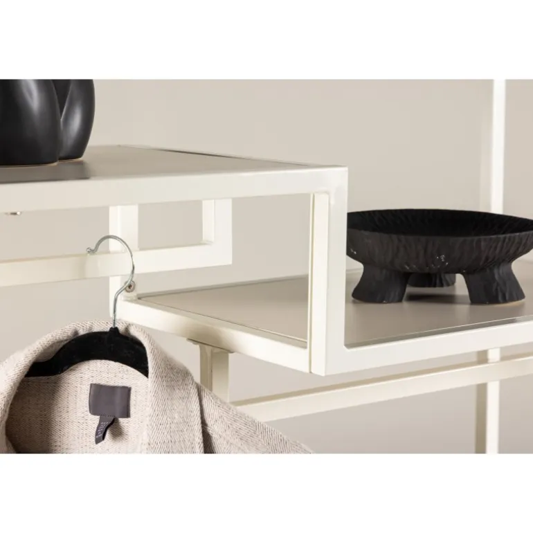 Omfavn en ny æra af stil og orden med vores tøjstativ Staal. Fremstillet i robust stål og klædt i en blød beige nuance, er Staal ikke kun en funktionel løsning, men også et moderne interiørdetalje, der løfter atmosfæren i dit hjem. Staals elegante og moderne design giver det en tidløs æstetik, der passer ind i forskellige rum. Den bløde beige farve skaber en rolig og harmonisk atmosfære, hvilket gør Staal til en perfekt tilføjelse både i soveværelset og i entréen. Placer det, hvor du har brug for både stil og organisation. Hvad der gør Staal unikt er de smarte hylder. To mindre hylder giver dig mulighed for at arrangere smykker, foldet tøj eller andre små accessories, mens den større hylde giver plads til større genstande eller måske et dekorativt element. Og som om det ikke var nok – Staal tilbyder også plads til bøjler, hvilket gør det til en komplet løsning for dine tøjopbevaringsbehov. Placer og organiser dine tøj og accessories med lethed ved hjælp af Staal. Det er ikke kun et praktisk tøjstativ, men også et stilfuldt møbel, der sætter tonen i rummet. Staal giver dig mulighed for at kombinere funktion og æstetik på en moderne og imponerende måde. Vælg Staal – din pålidelige ledsager til at skabe orden og moderne stil i hver del af dit hjem!