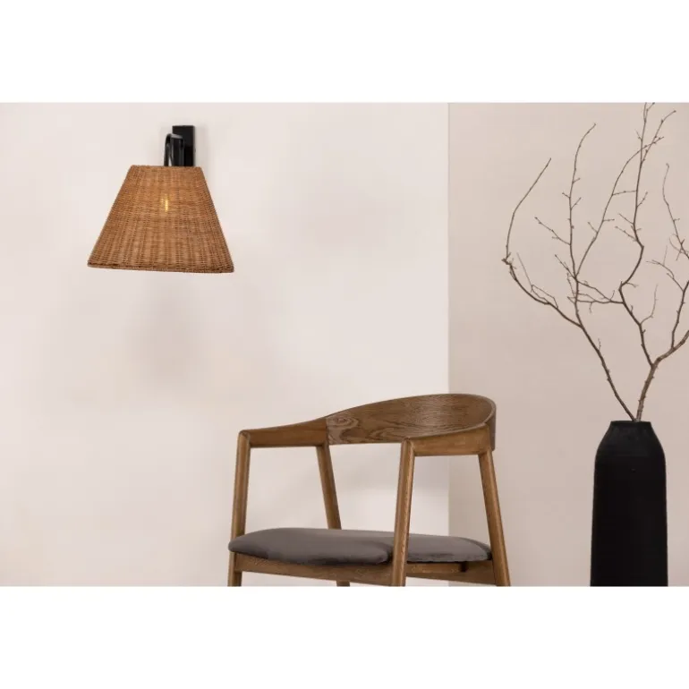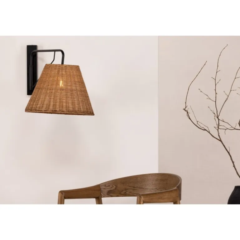 Skab en varm og hyggelig atmosfære i rummet med væglampen Stala! Lampen har en stilfuld sort beslag i jern og en lampeskærm i naturlig farvet rattan. Med denne lampe er du sikker på at være helt i tråd med tidens tendenser. De jordnære farver og det behagelige lys skaber et roligt udtryk, der gør denne lampe perfekt til at placere ved siden af sengen i soveværelset til aftenens læsetid. Lampen kræver en fast installation, som kun må udføres af en elektriker.