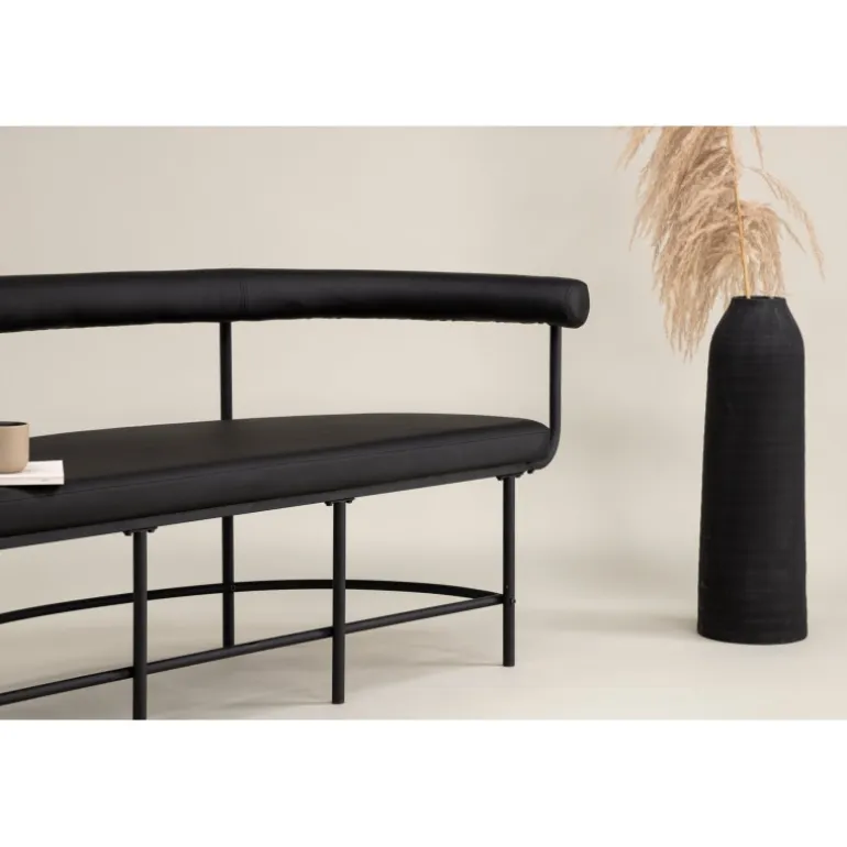Hæv stilniveauet i dit hjem med denne lækre bænkesofa, der imponerer! Stallhagen bænkesofa fra Josefin Lustigs kollektion har et luksuriøst og gennemtænkt design med moderne former og skandinavisk design. Formet som en halvmåne, er ryggen let rundet og sædet komfortabelt i fræk PU-polstring. Rammestrukturen er minimalistisk i sort stål. Placer den i gangen eller stuen for at skabe en moderne atmosfære i rummet!