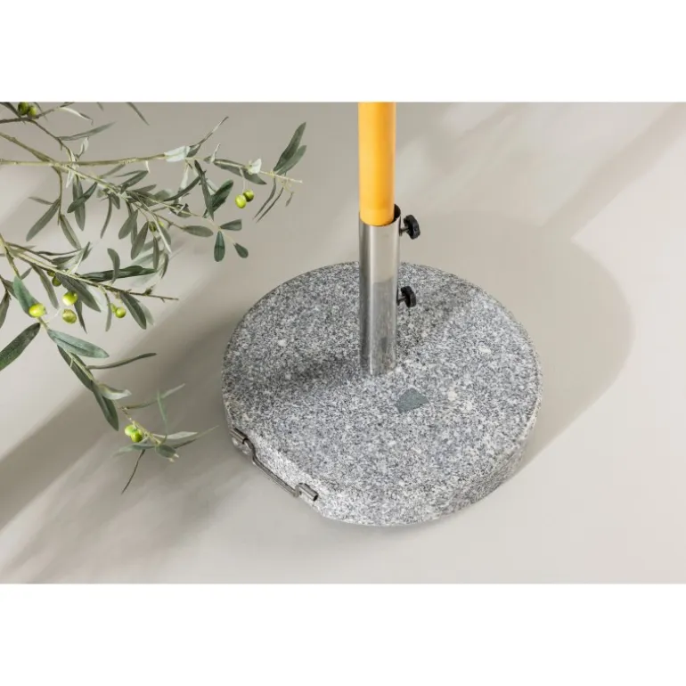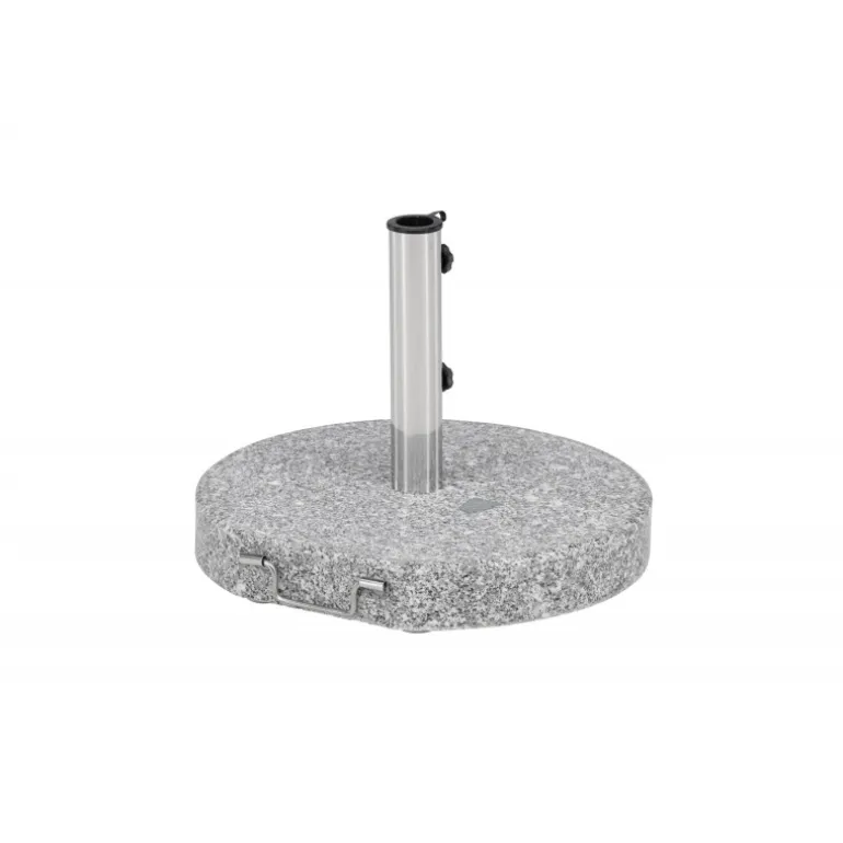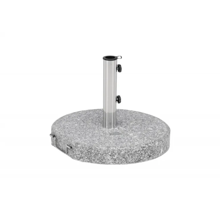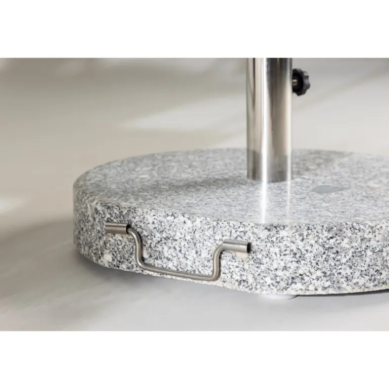 Oplev Stathera Parasolsten i en elegant marmorlignende farve. Denne runde parasolsten er designet med hjul og håndtag, som gør det nemt at flytte den. Med en vægt på 40 kg sikrer den stabilitet for din parasol. For at forlænge levetiden, skal parasolstenen opbevares tørt og varmt ved risiko for frost, for at reducere risikoen for frostrevner. Denne parasolsten er lavet af granit, som kræver regelmæssig vedligeholdelse for at bevare sin skønhed og holdbarhed.