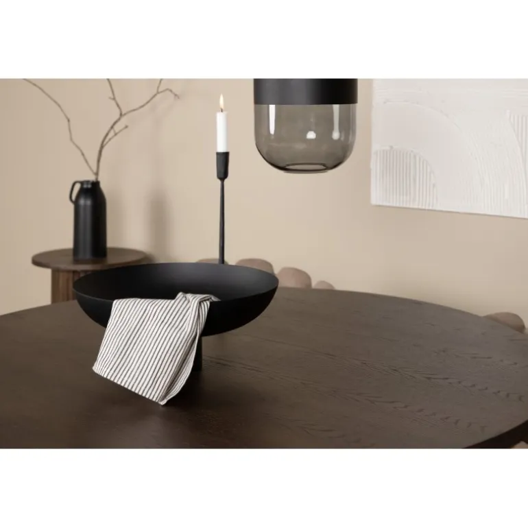 - Dekorativ cylinderformet ramme i sort metal: Robust og stilfuld.