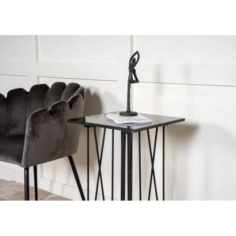 Skab en moderne stil i soveværelset eller ved siden af sofagruppen med hjælp fra et trendy sidebord i sort stål! Dette sidebord tilhører Sten-serien og vil give dit hjem en vidunderlig indretningsfølelse med sin unikke og spættede bordplade samt en utroligt dekorativ sort metalbase. Det gennemtænkte overordnede design gør simpelthen dette sidebord til en stilfuld indretningsdetalje, der vil hæve hele rummets niveau af elegance. Den kunstige stenplade giver en følelse af luksus og eksklusivitet, og den dekorative base skaber et personligt præg. Brug det som et stilfuldt natbord og hav alt inden for rækkevidde, eller placer det i stuen som et fantastisk sidebord til at fremvise moderne dekorationer eller skabe ekstra opbevaringsplads. Oplev den perfekte kombination af stil og funktion med dette fantastiske sidebord, der vil være en trofast følgesvend i mange år fremover! Mål: 40x40cm.