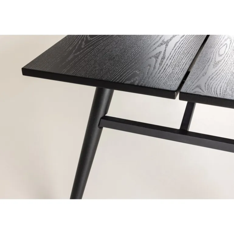 Pynt hjemmets hjerte moderne og prangende med et rektangulært spisebord fra Stilfuld-serien. Spisebordpladen har en dekorativ revne i midten og de trendy udstikkende bordben er i metal. Spisebordet er konsekvent sort i farven, hvilket skaber en luksuriøs og selvsikker følelse i rummet. Kombinér med flotte stole og sæt dit personlige præg på interiøret!