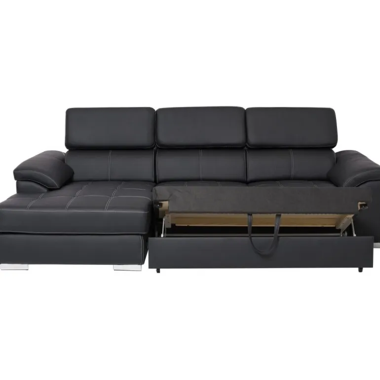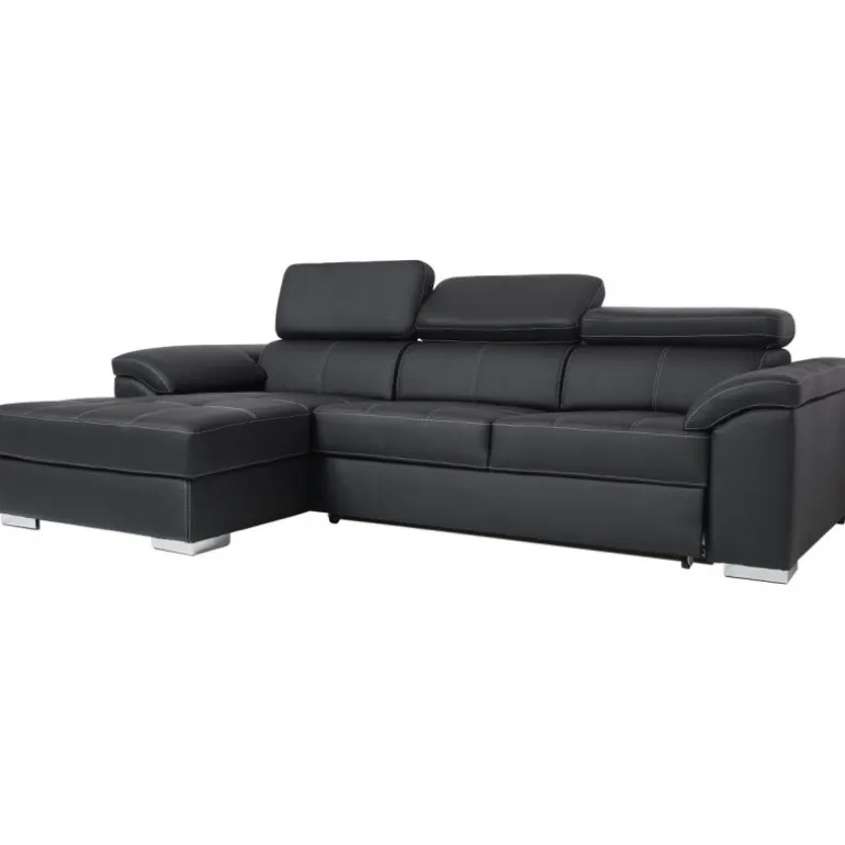 Stitch sovesofa med venstrevendt chaiselong og nakkestøtter med vippefunktion. Sofaen kan slåes ud og omdannes til en bekvemmelig soveplads for 2 personer.