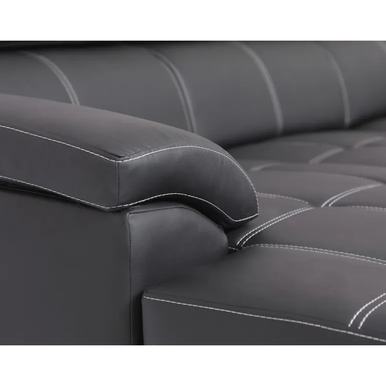 Stitch sofaen er smart designet med hvide kontrastsyninger, nakkestøtter med vippefunktion, bløde behagelige armlæn og betrukket med sort vedligeholdelsesvenligt imiteret læder.