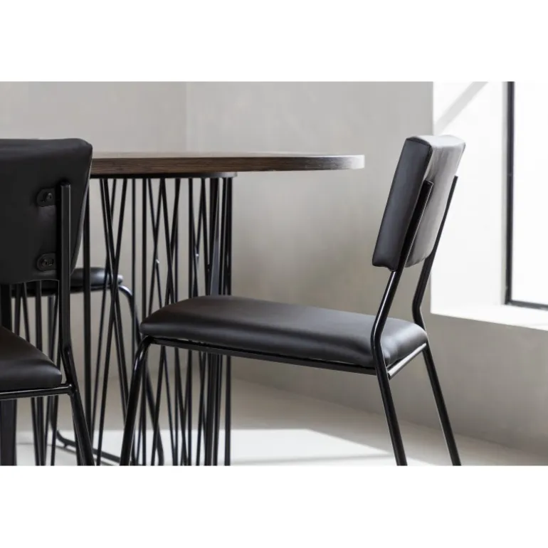 - Minimalistiske stole: Moderne design med sort polyurethanlæder og polyester.