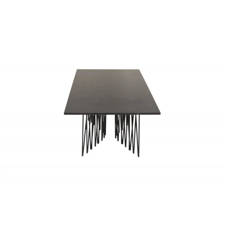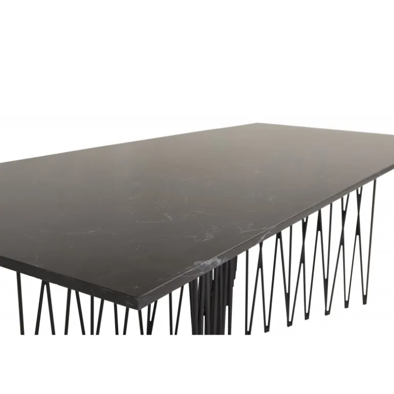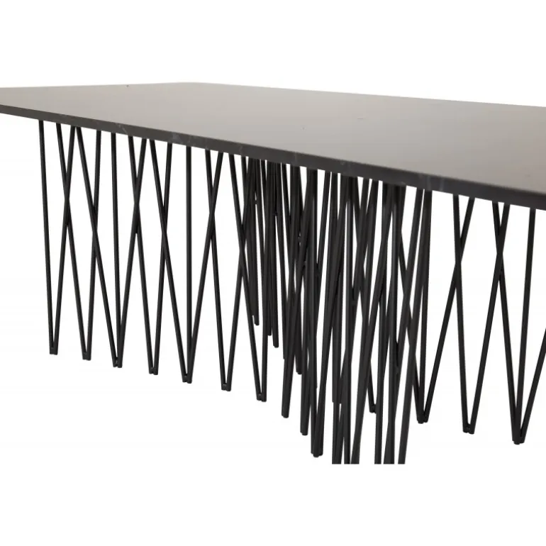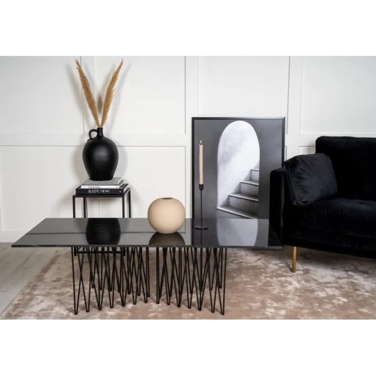 Sofabordet Stone er helt i tråd med tidens trends og løfter din stue til næste niveau! Bordet har en sort mønstret bordplade i kunststen, der giver bordet et luksuriøst og stilfuldt indtryk. Det dekorative understel i sort metal imponerer med sit unikke design. Den stilfulde farve gør bordet nemt at matche med andre indretninger og gør det tidløst. Placér det foran sofaen og lad bordet sætte tonen for hele rummet! Sofabordet tilhører Furniture Fashion.