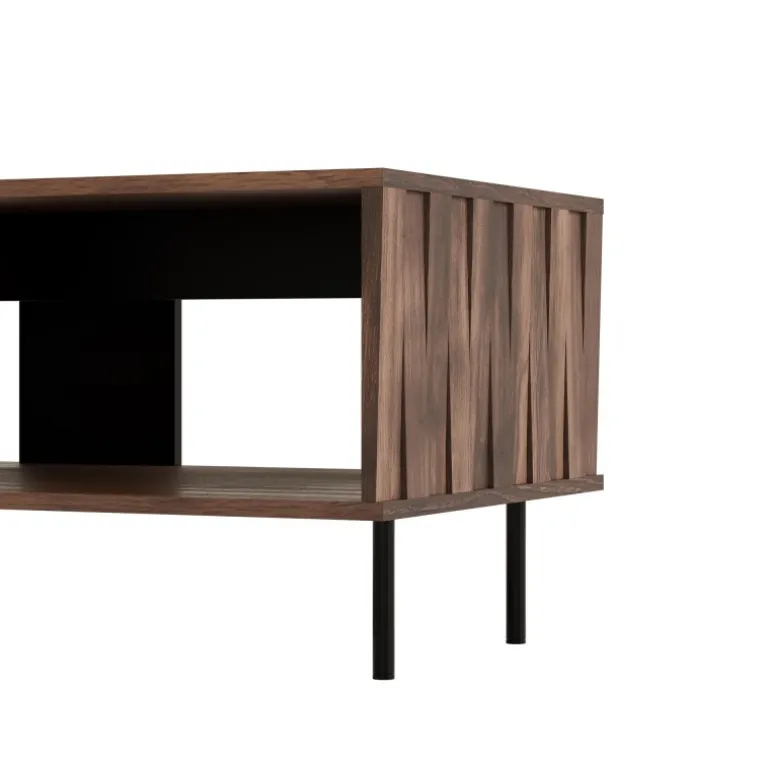 SWING sofabordet i valnød og Sort er det perfekte valg til dit moderne hjem. Med dimensionerne 100/54/45 cm passer det ideelt til både store og små stuer. Bordet er lavet af lamineret spånplade, lamineret MDF og pulverlakeret stål, hvilket sikrer både stil og holdbarhed. Dets elegante design og kombination af valnød og Sort farver bringer et sofistikeret touch til enhver indretning.