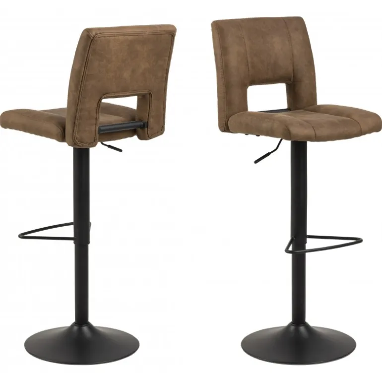 Sylvia barstol Preston stof lysebrun 22, gaspatron TÜV, fodstøtte, trompetfod pulverlakeret ru, mat sort, Prisen er pr stol, du skal derfor mindst købe 2 stole