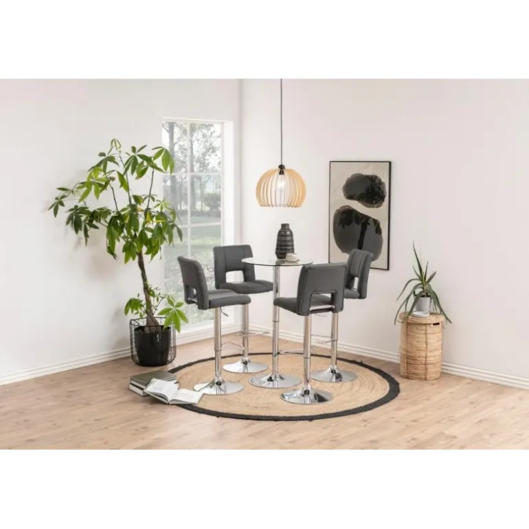 Sylvia barstol Corsica stof mørkegrå 20, gaspatron TÜV, fodstøtte, trompetfod krom, pakning 2 stk