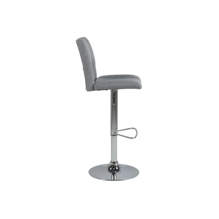 Dresden er en smart barstol med et lækkert design med sølvfarvet trompetfod og fodstøtte. Stolen har en god polstring, hvilket giver stolen en høj komfort. Sædet er betrukket med et stilrent lysegråt stof. Siddehøjden justeres nemt via håndtaget under sædet.
