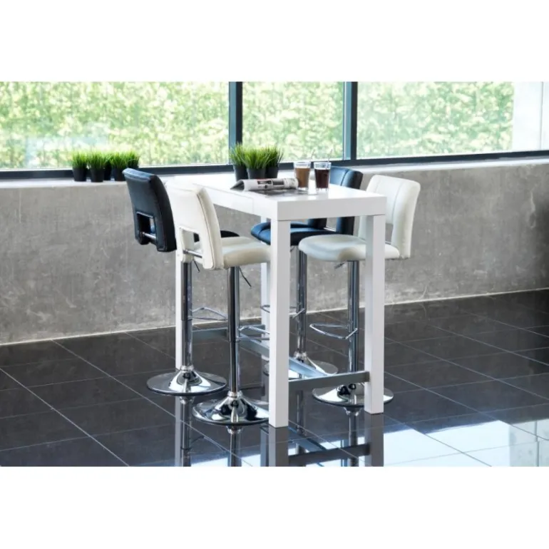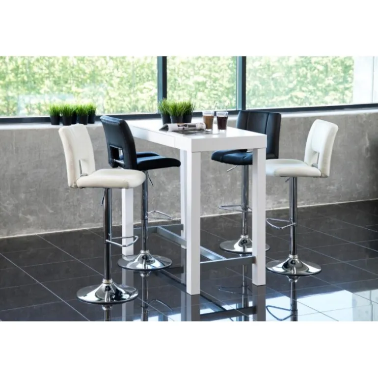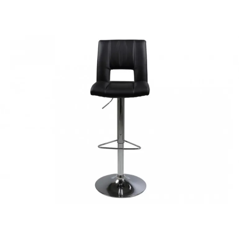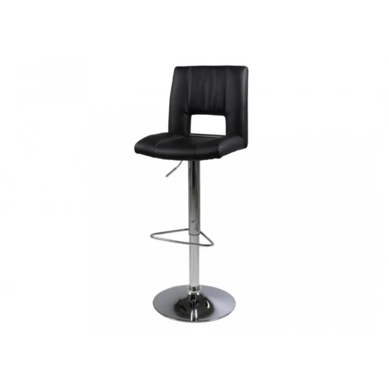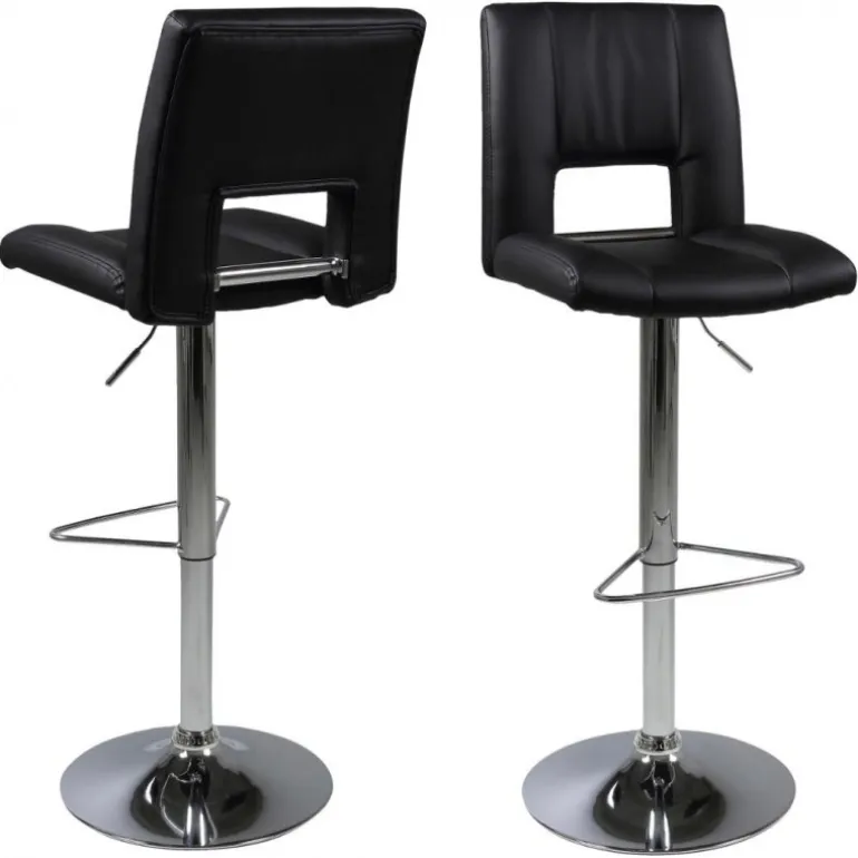 Sylvia barstol læderlook sort PU, gaspatron TÜV, fodstøtte, trompetfod krom, pakning 2 stk